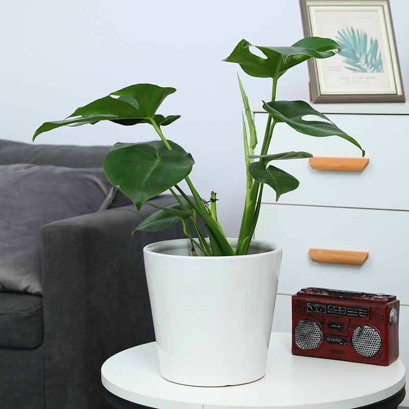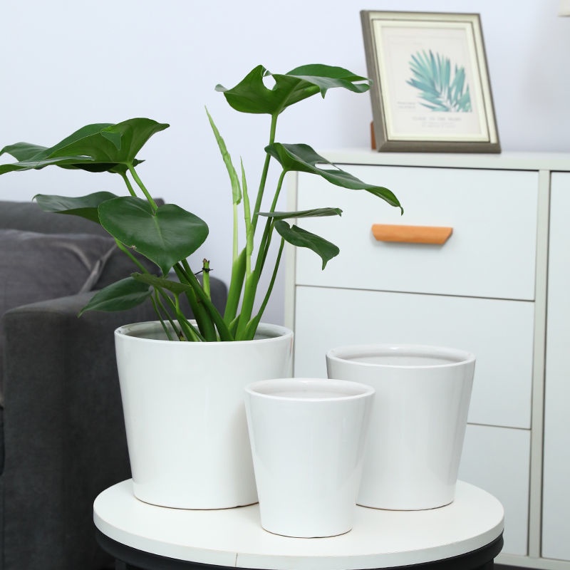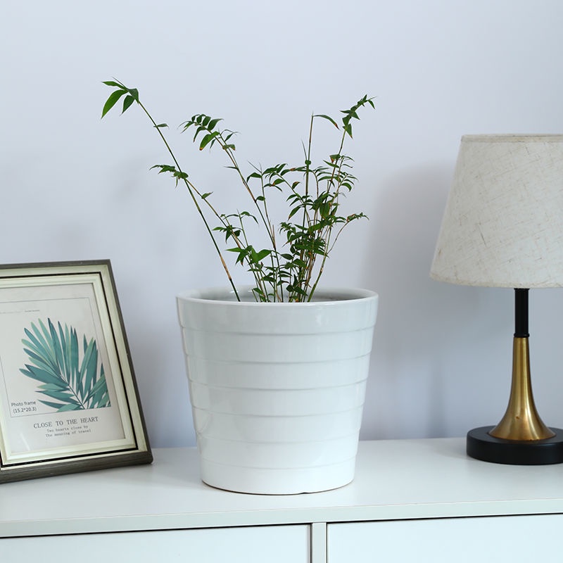 Flower Pot Ceramic Extra Large Simple White Thread Indoor and Outdoor Floor Balcony Pachira Macrocarpa Money Tree Green Plant Flower Pot/Nordic flower pot