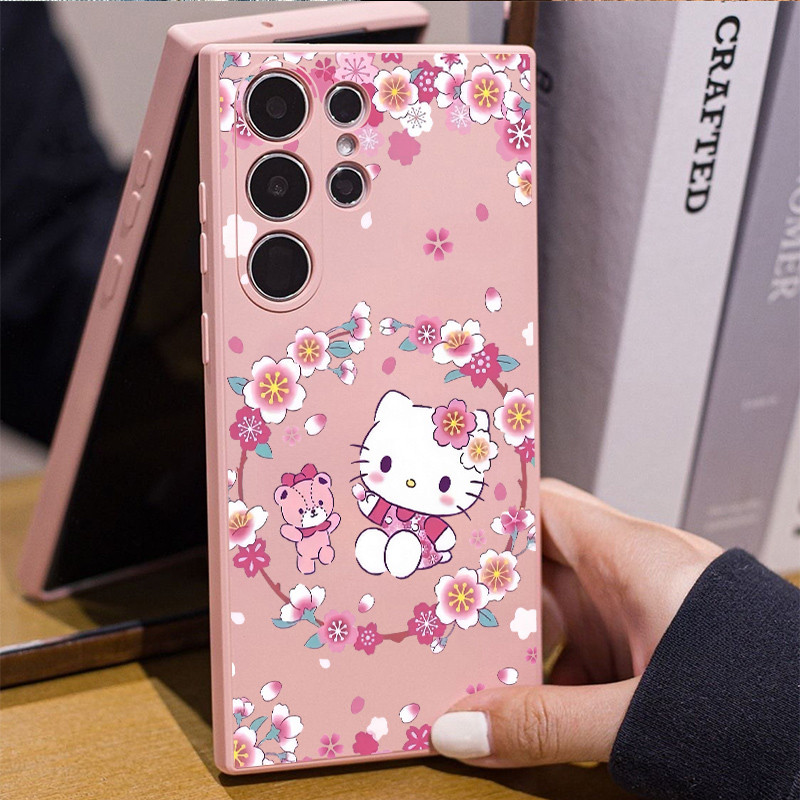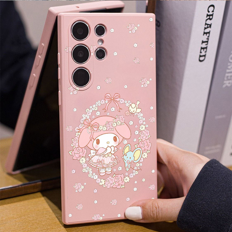 Flowers Sanrio Hello Kitty Kuromi Cinnam Soft Liquid Silicone Case for Samsung S25 Ultra S24 FE S24 Ultra S23U S22 A56 A55 A54 A05 A15 A16 A35 Shockproof Samsung Cover