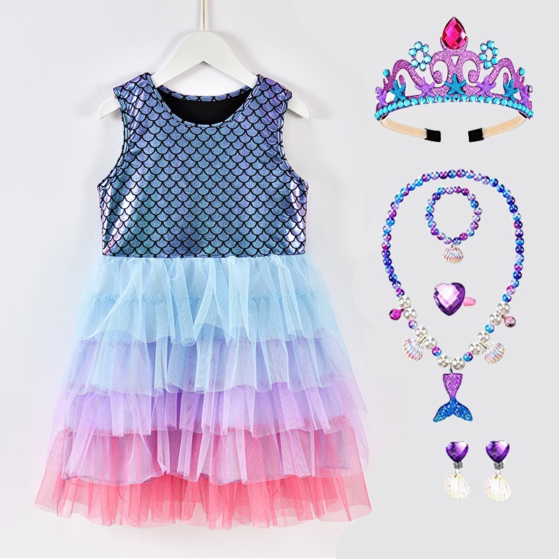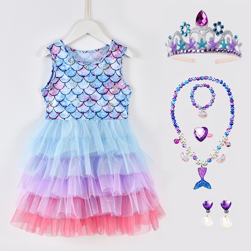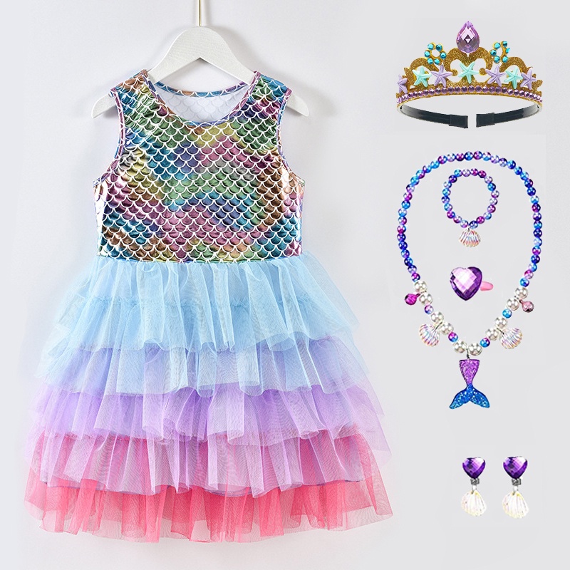 Mermaid Princess Dress Starfish Crown Necklace Jewelry for Girls Birthday Party Costume Accessories