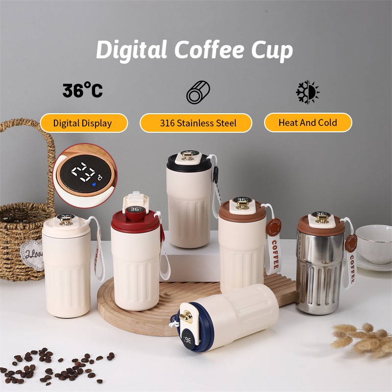 【Birthday Gift】Digital Display Coffee Mug/Vacuum Cup SUS 316 Temperature Water Bottle 450ML
