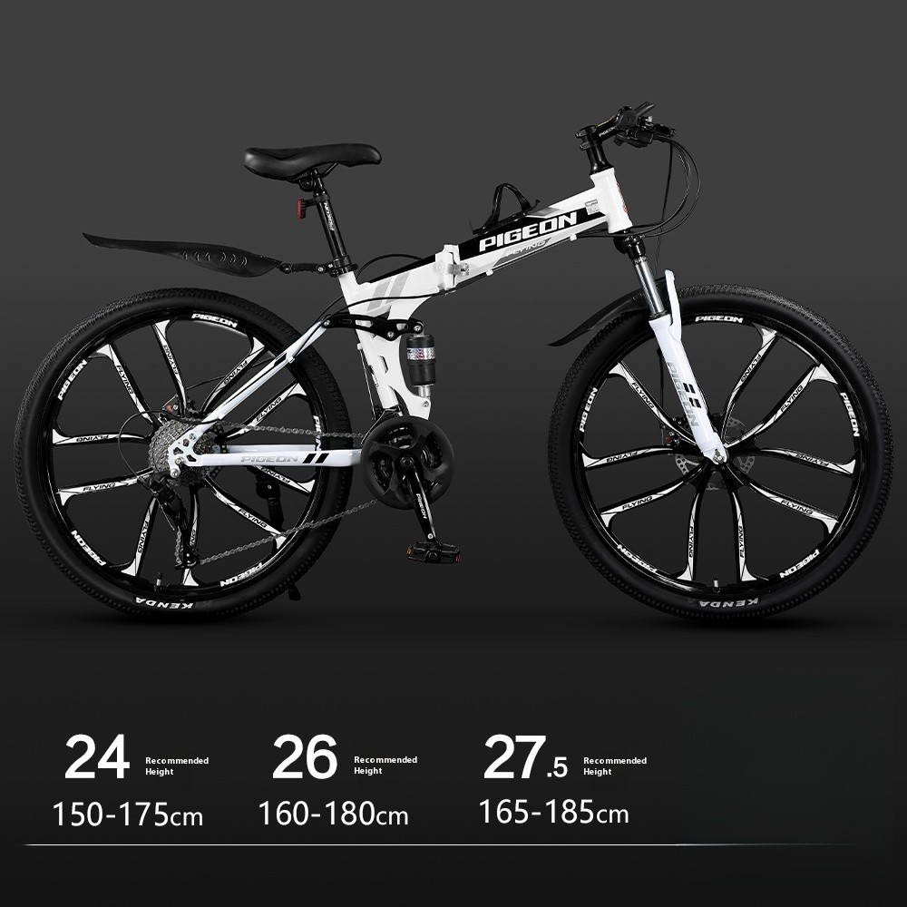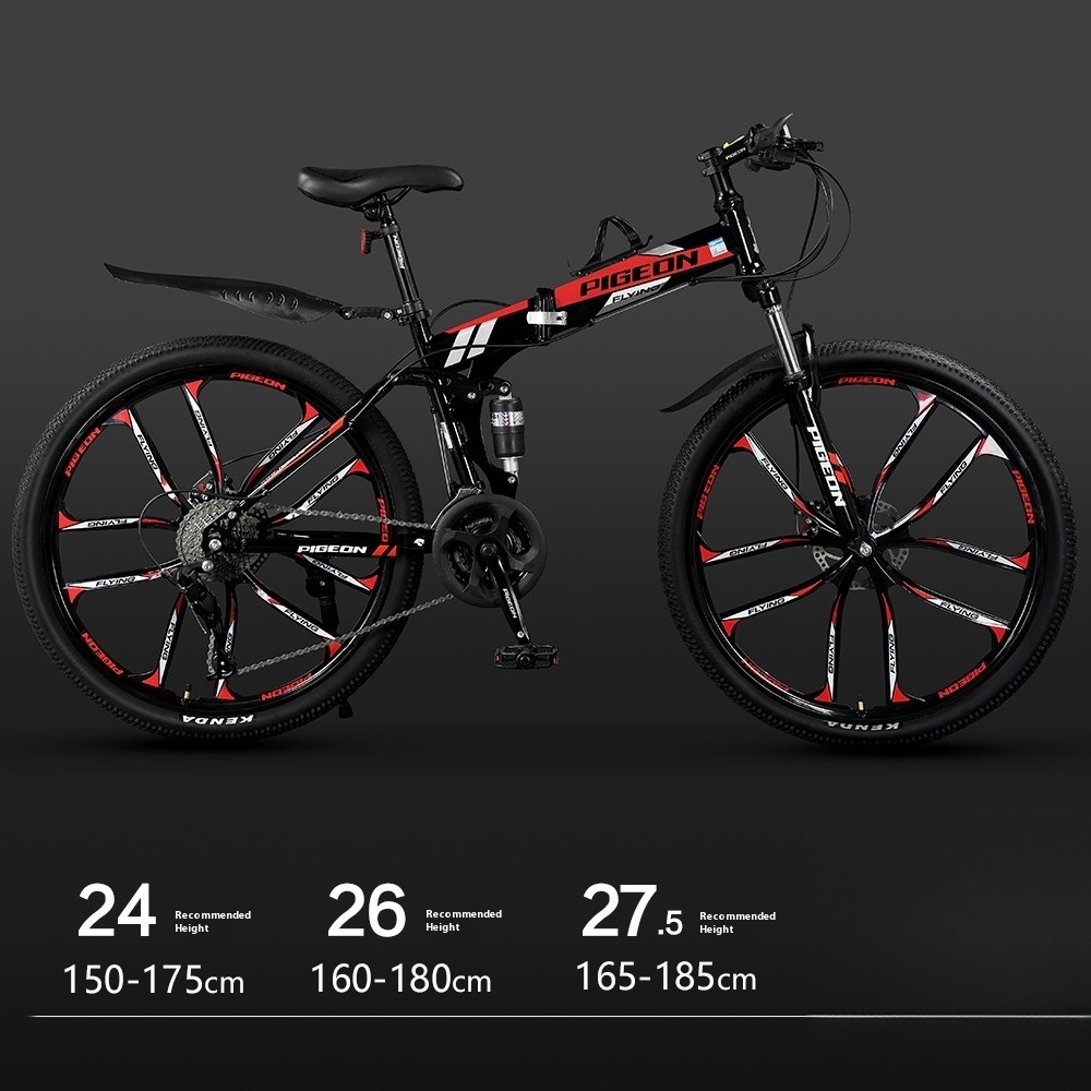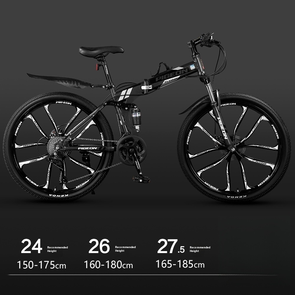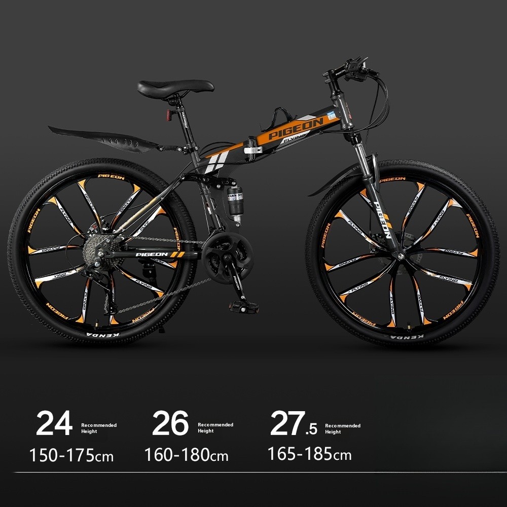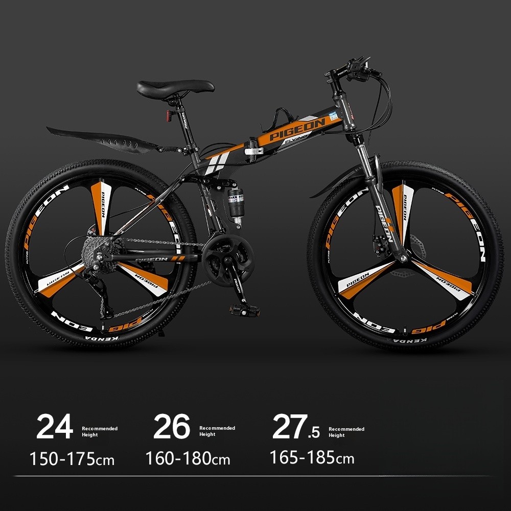 Foldable Bicycle Variable Speed Dual Shock Absorber Carbon Steel 24 / 26 Inches Mountain Bike