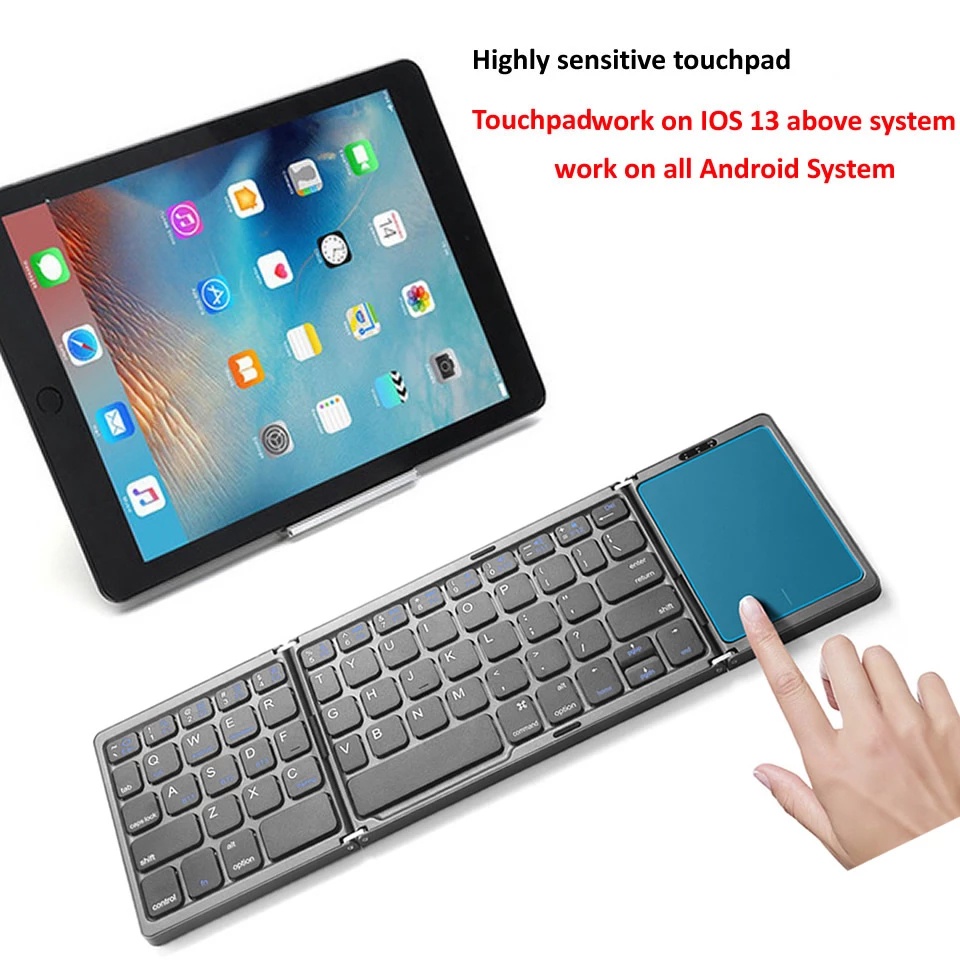 Foldable Bluetooth Keyboard Rechargable Portable Mini USB Wired Keyboard with Touchpad Mouse for Android PC Tablet 3-Device Sync