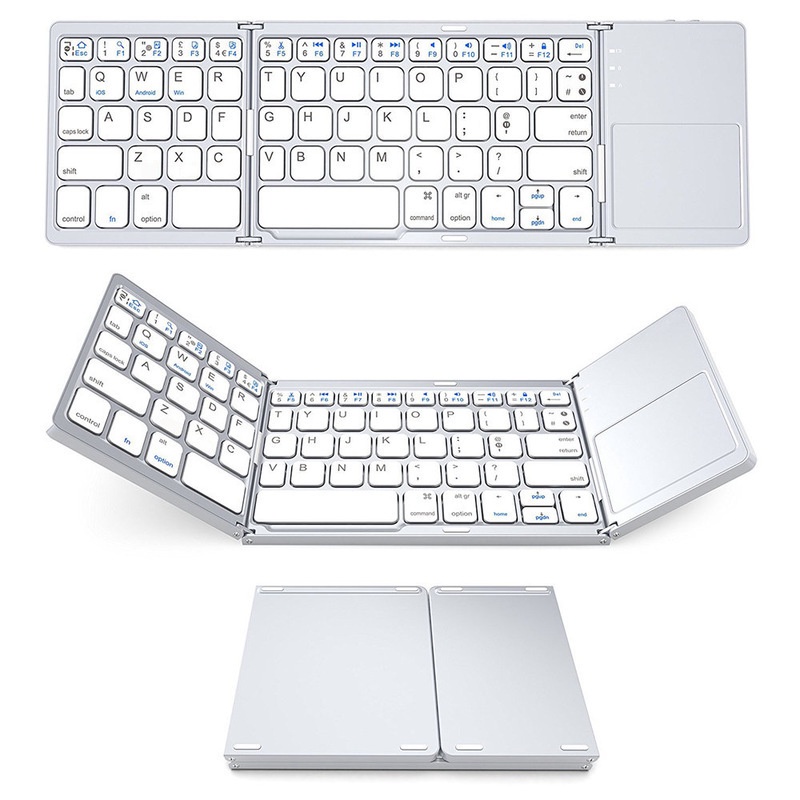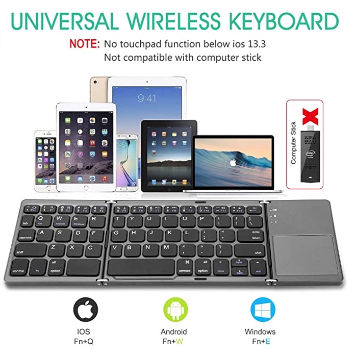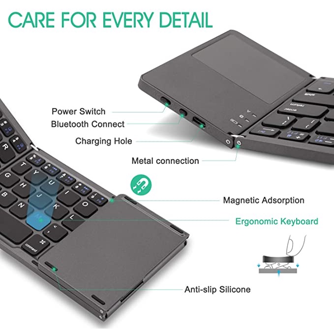 Foldable Bluetooth Keyboard with Touchpad - Portable Wireless Keyboard with Stand Holder, Rechargeable Full Size Ultra S