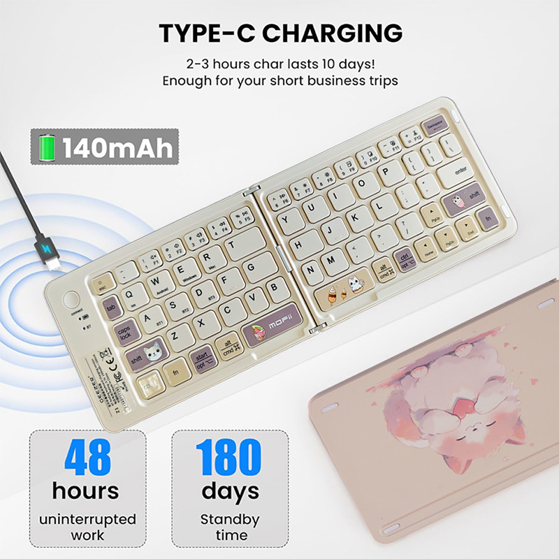 Foldable Bluetooth Wireless Folding Keyboard 67 Keys Cute Style Rechargeable Wireless Bluetooth Keyboard for Windows/IOS/Android