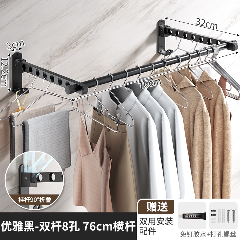 Foldable Clothes Rack Wall-Mounted Wall Windproof Bathroom Perforation-Free Retractable Clothes Rod Balcony Cool Clothes Drying Quilt Rack