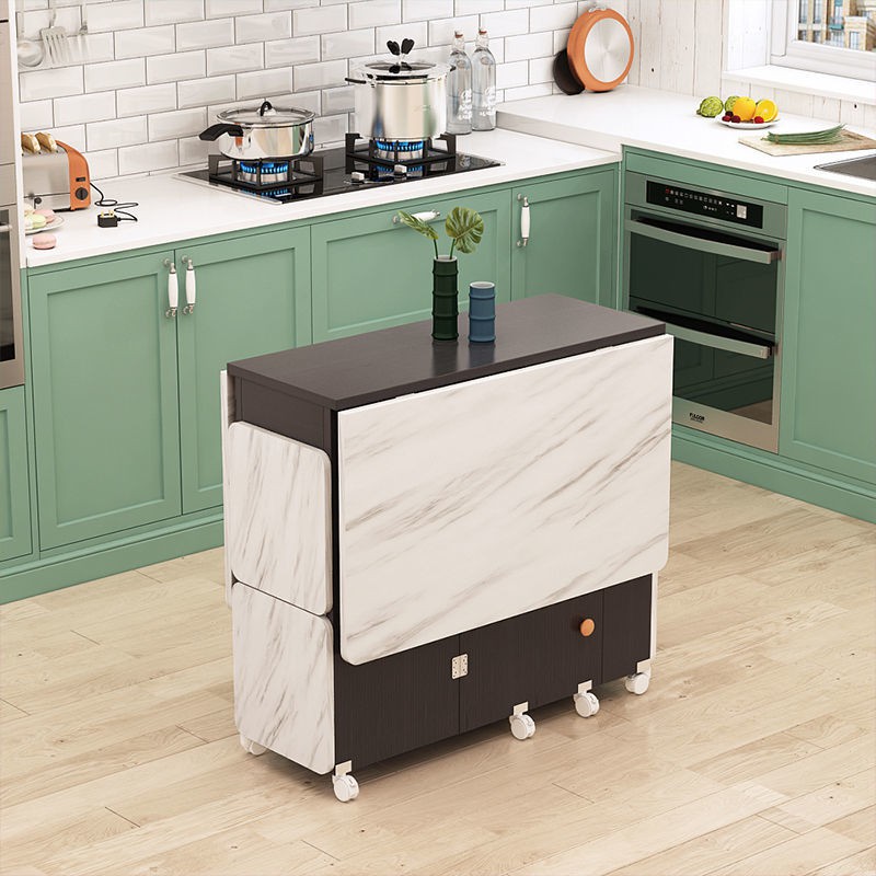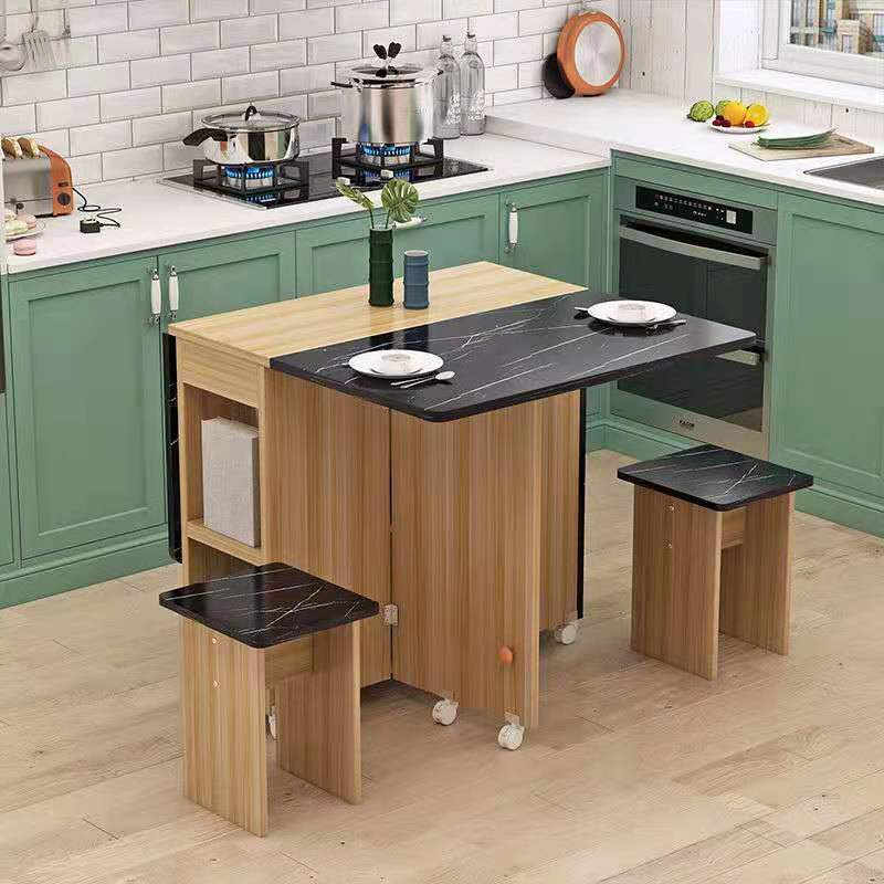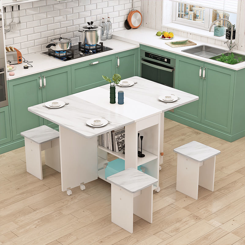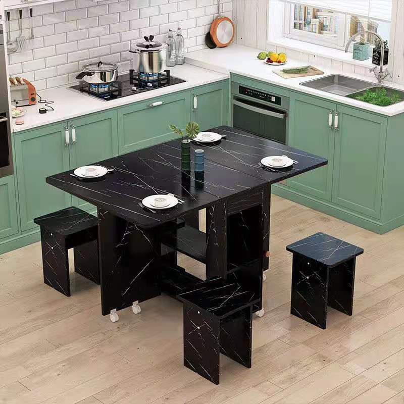 Foldable Dining Table Small Household Movable Pulley Telescopic Rectangular Simple dining table set Multi-functional Table for 4 People(with 4 Chairs)