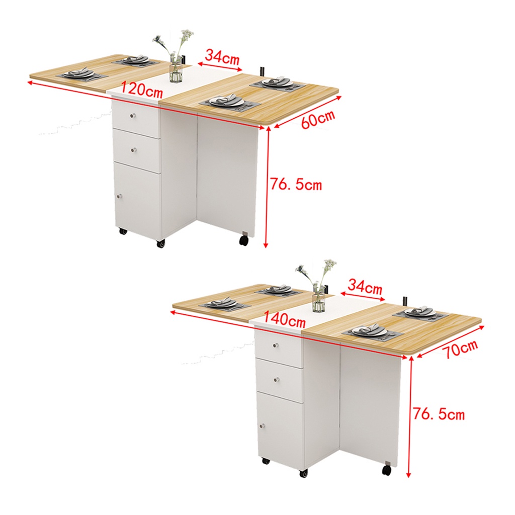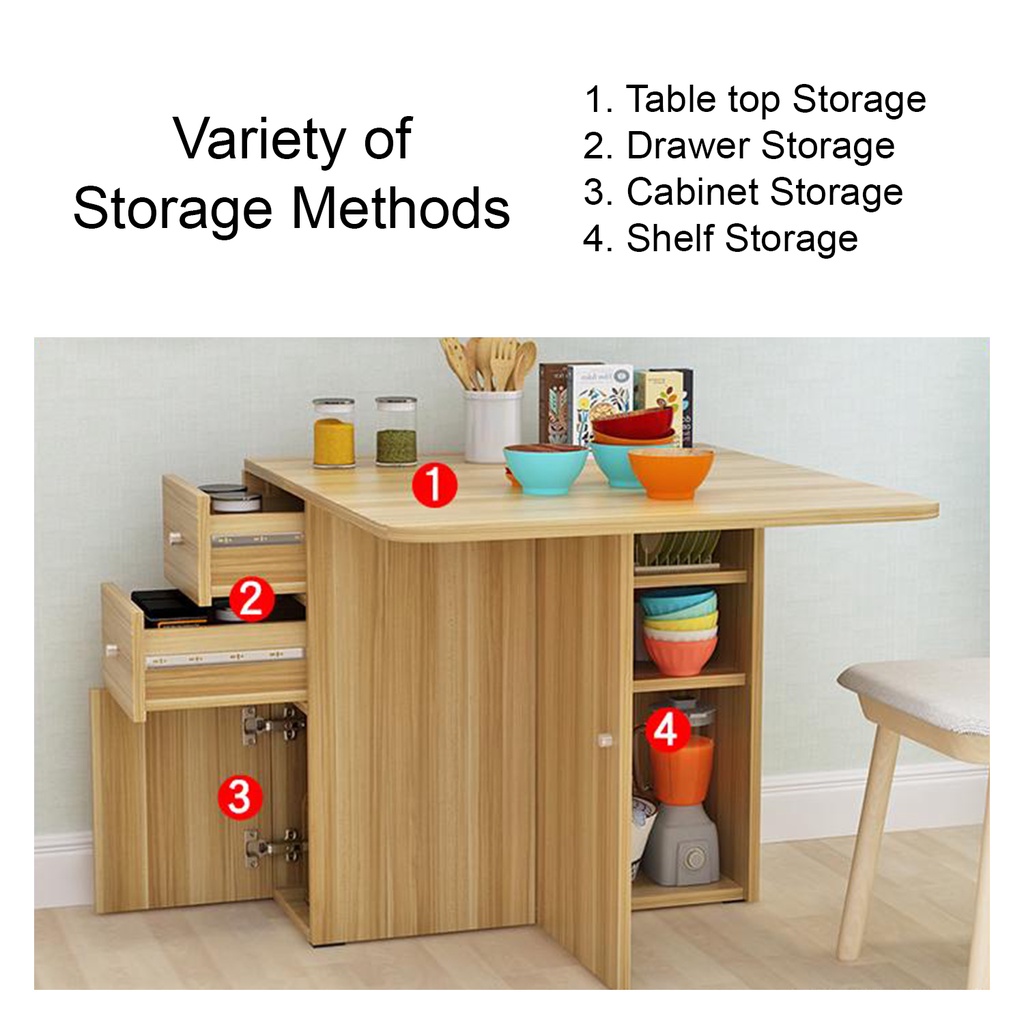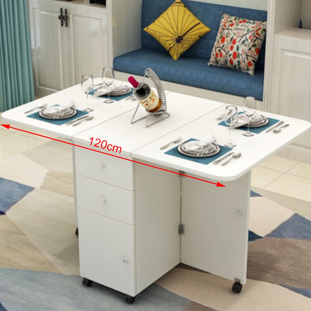 Foldable Dining Table With Drawer Kitchen Storage Cabinet Space Saver Folding Table With Wheels