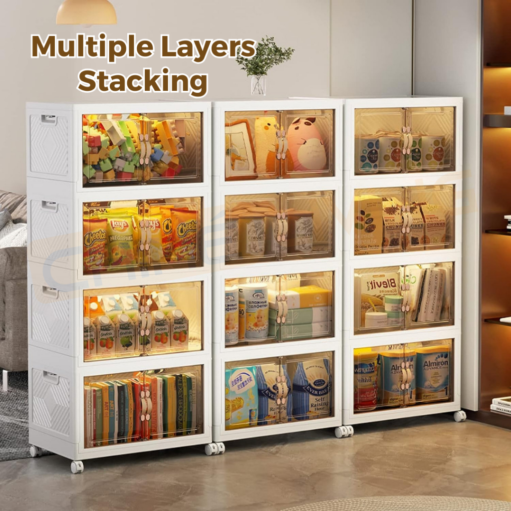 Foldable Folding Cabinet Wardrobe with Wheels | Collapsible Drawer Stackable Storage Box Clothes Toys | Home Organizer