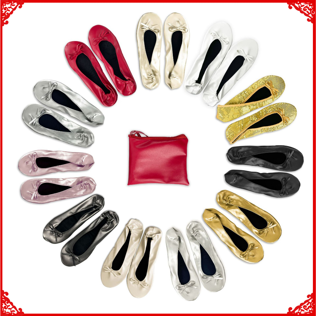 Foldable Indoor Ballet Shoes Wedding Dance Shoes Lace-Free Wedding Sequined Slippers