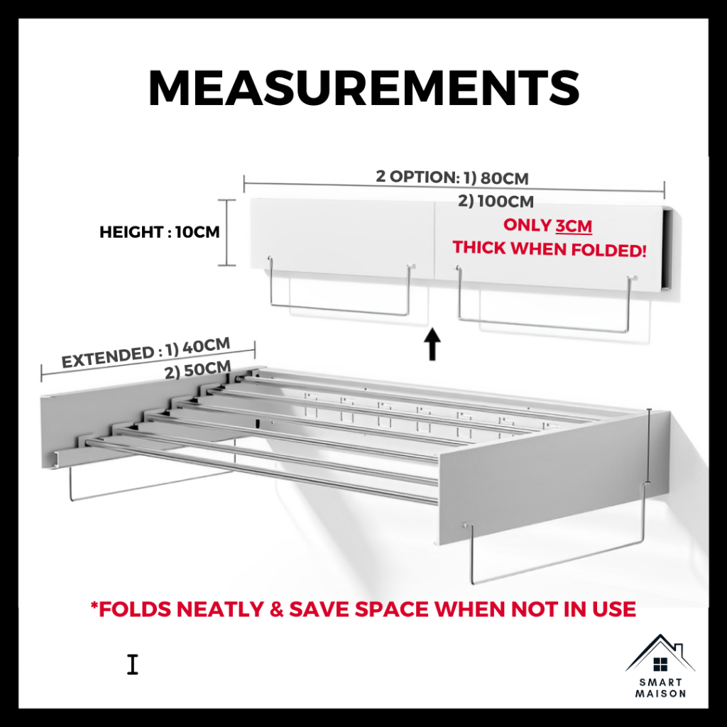 Foldable Laundry Wall Rack ( Drying Rack / Indoor / Outdoor / Clothes Hanger / Hanging Rack / Retractable Rack )