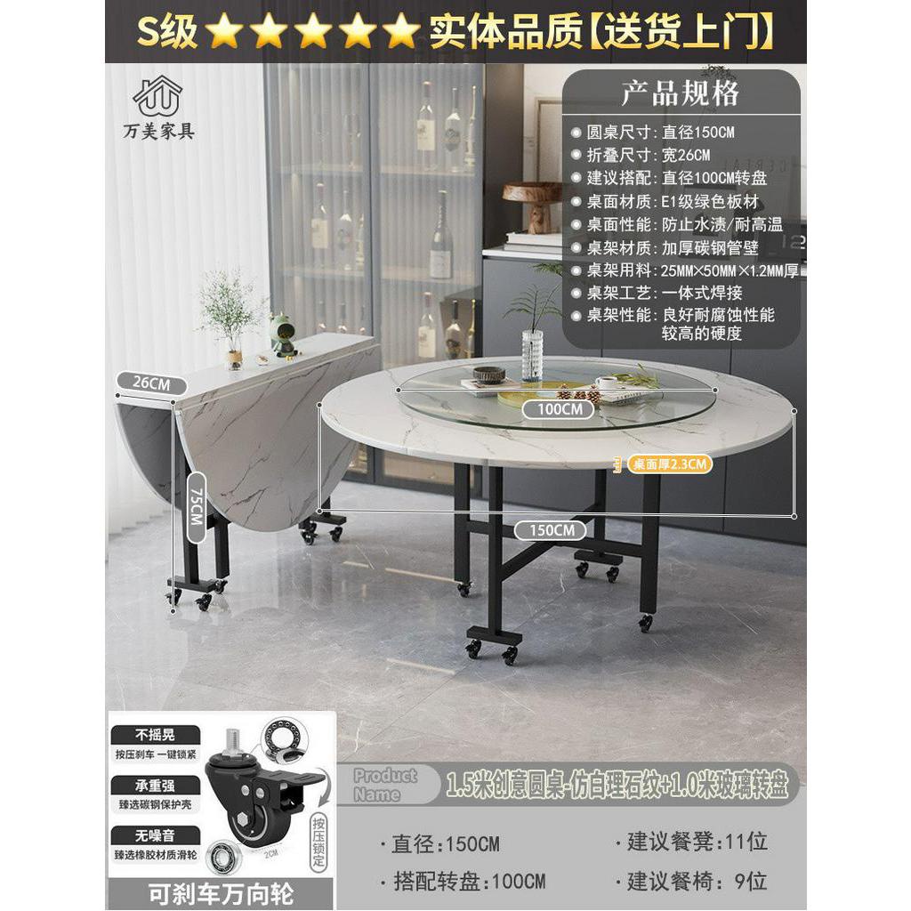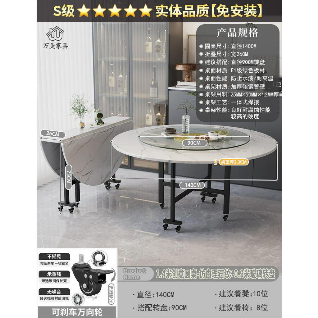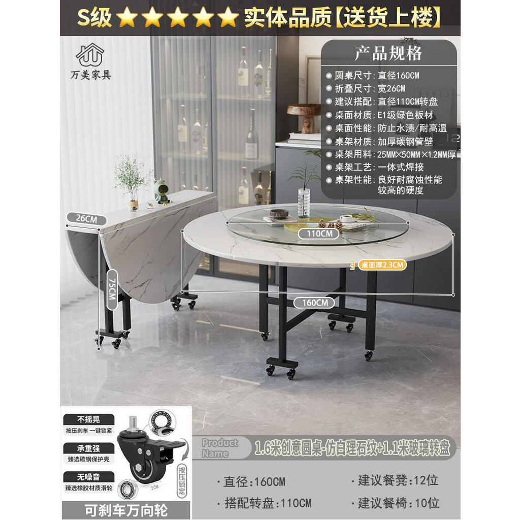 Foldable Marble Dining Table Movable Large Round Dining Table Multifunctional Dinning Table for Household