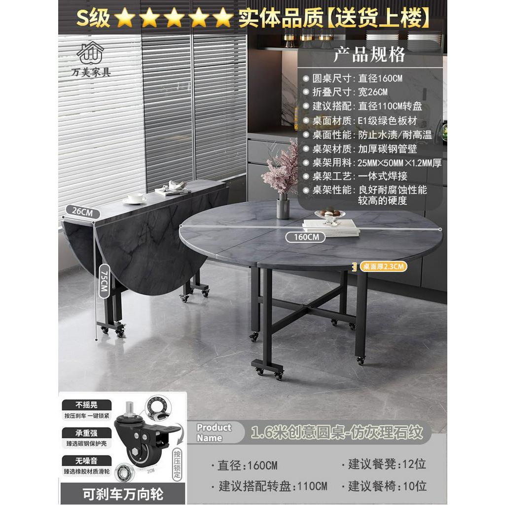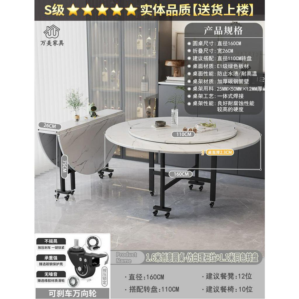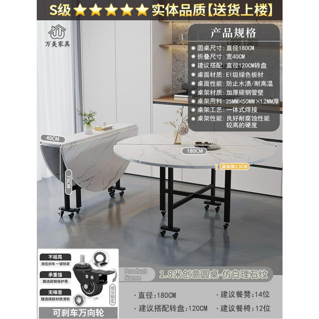 Foldable Marble Dining Table Movable Large Round Dining Table Multifunctional Dinning Table for Household