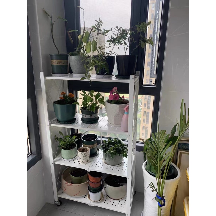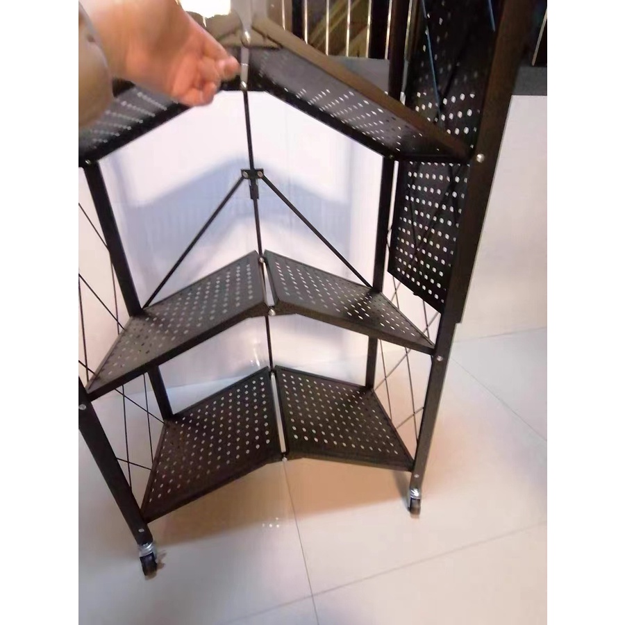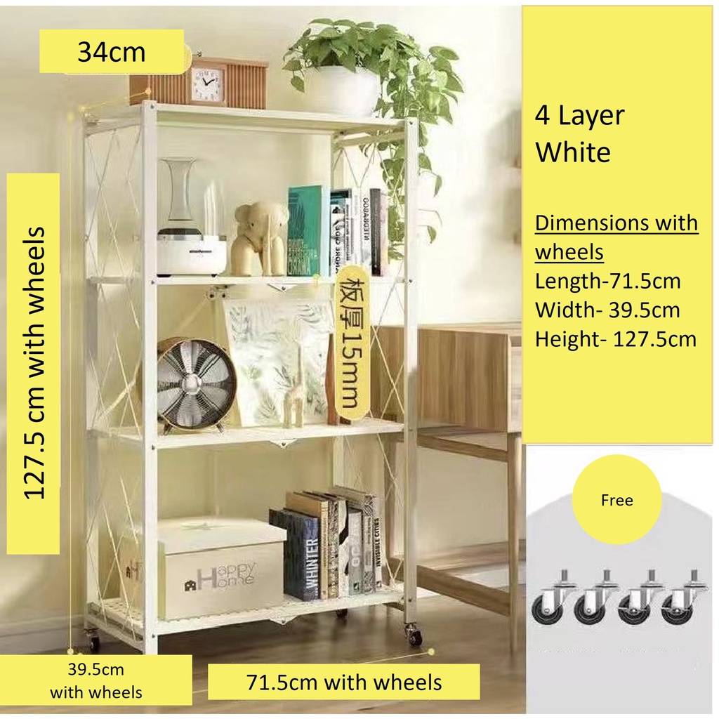 4 Tiers Foldable Kitchen Rack Metal Storage Rack with Wheels