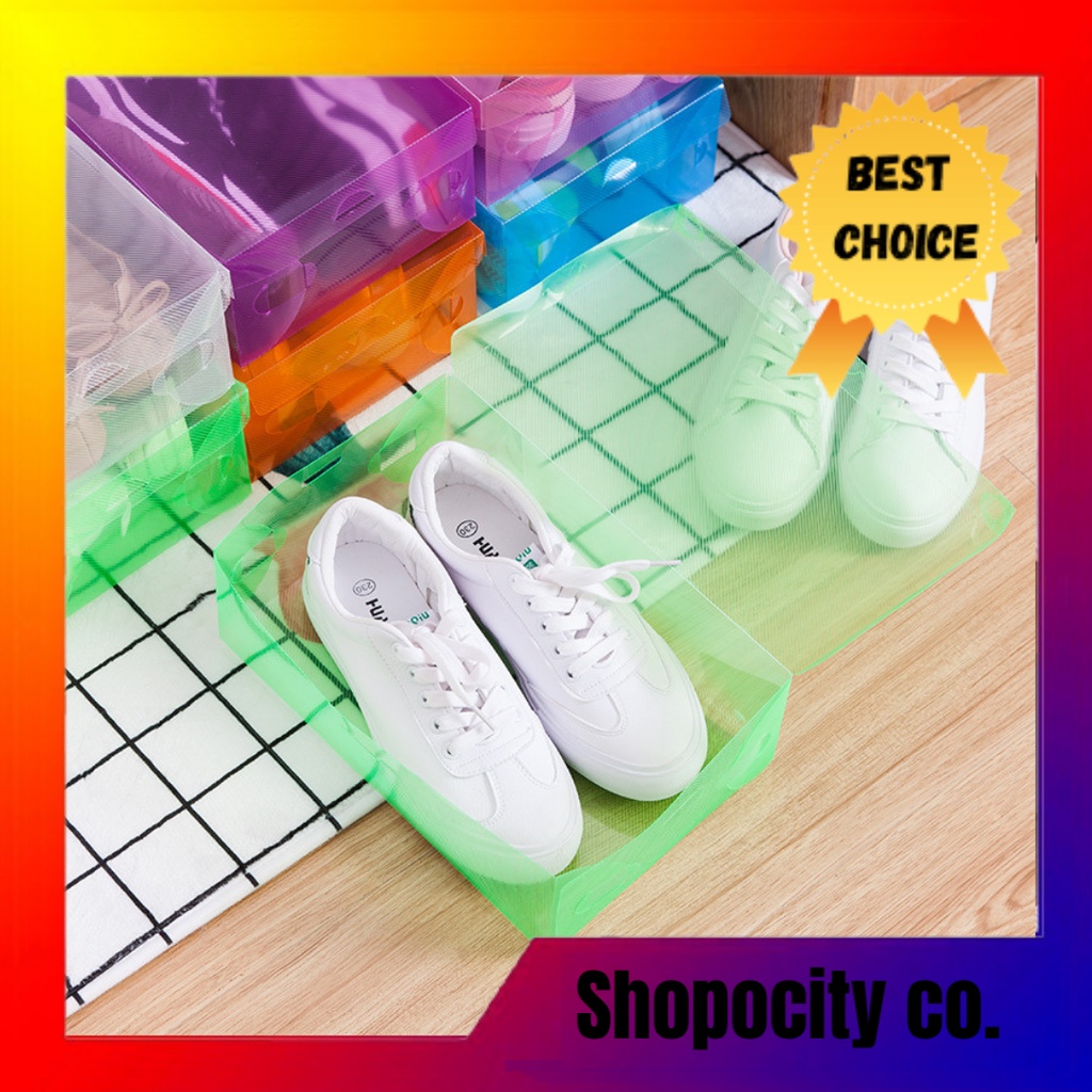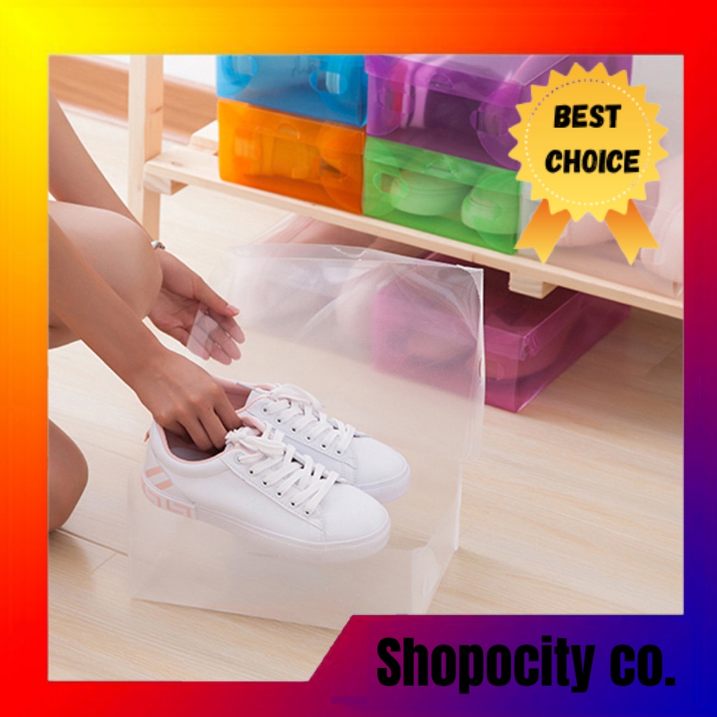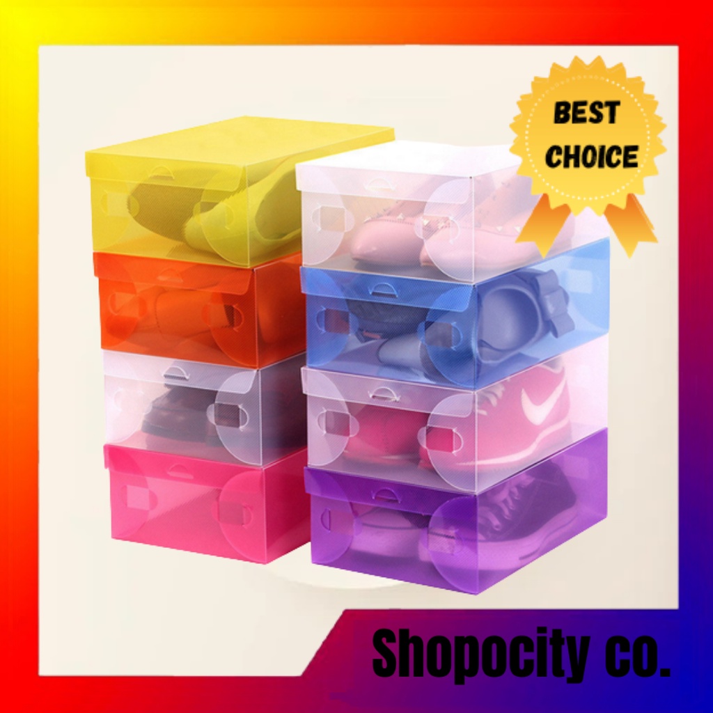 Foldable Multi-color Transparent Plastic Shoe Box Case Storage Box Stackable Premium Quality