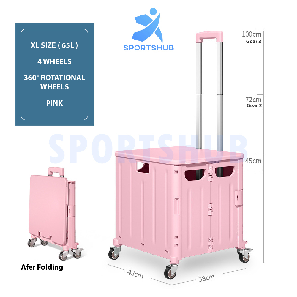 Foldable Shopping Cart Grocery Trolley Collapsible Cover Folding 360 Degree Rotational Wheels Large Capacity Storage 65L