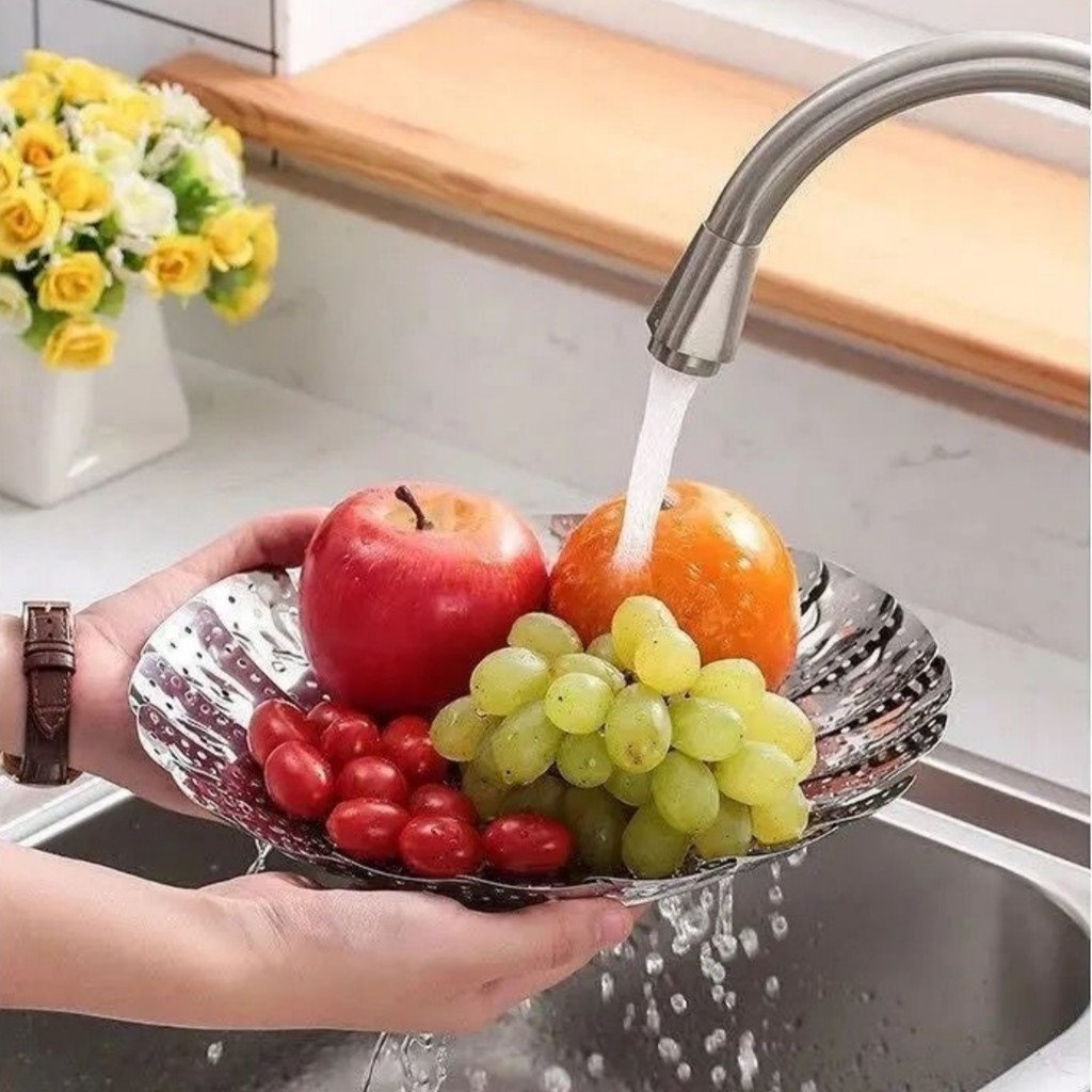 Foldable Steamer Rack Stainless Steel Kitchen Folding Food Steamer Tray Extendable Steam Basket Vegetable Draining Tray