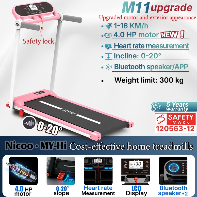 [NICOO]Foldable Treadmill With Massager 20° Incline Heart Rate Mini Running Home Exercise Fitness Gifts跑步机