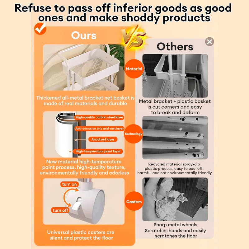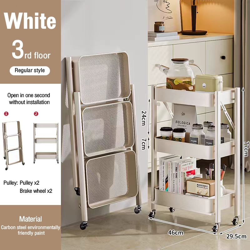 Foldable Trolley Rack Multi-purpose Foldable Trolley cart Rolling Cart Home Organiser Kitchen Shelf Movable Storage Cart