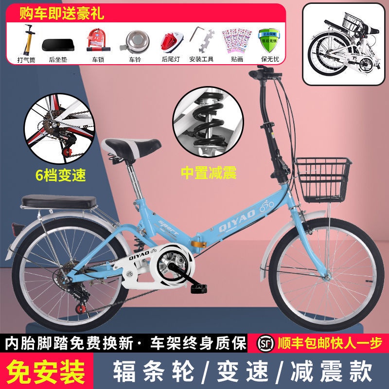 Foldable bicycle super light carrying adults to work 20/22 inch shock absorption variable speed male and female student children's bicycle