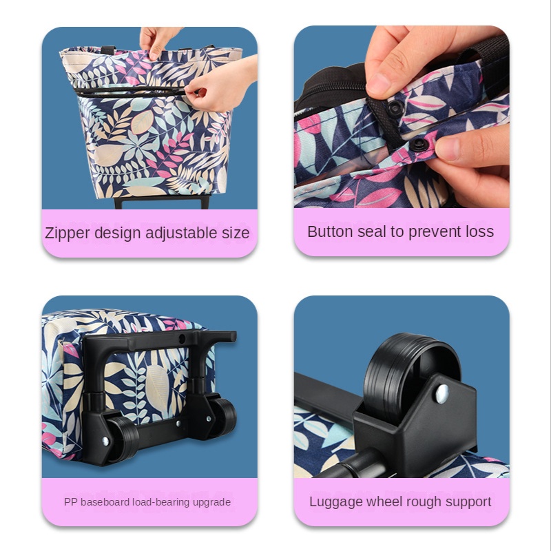 Folding Shopping Pull Cart Trolley Bag With Wheels Foldable Shopping Bags Reusable Grocery Bags Food Organizer Vegetables Bag