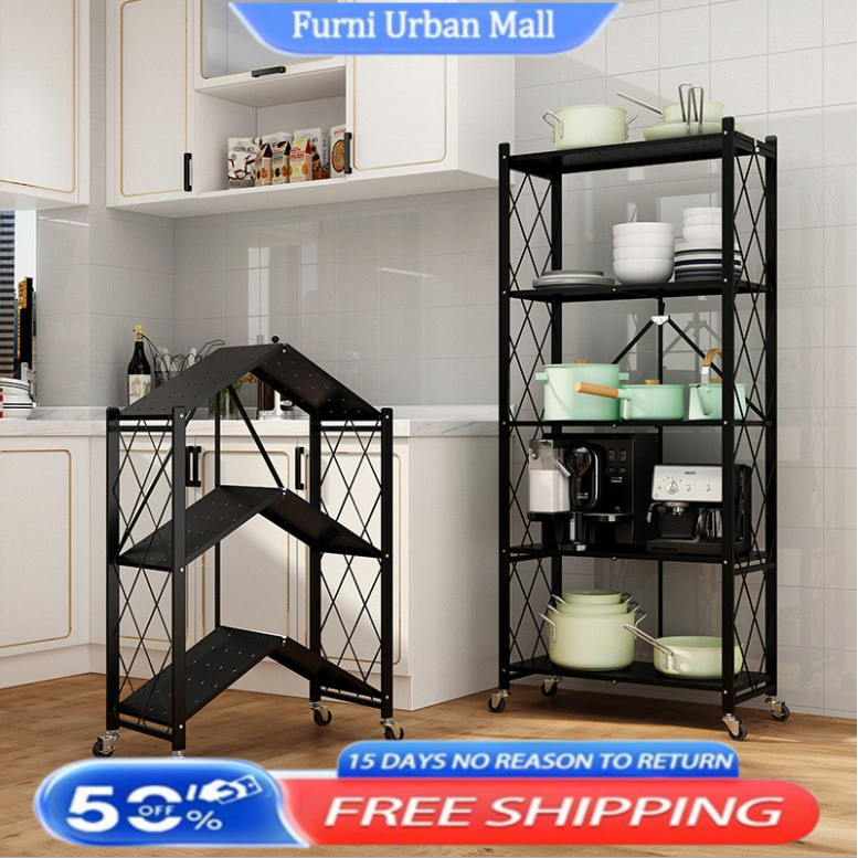 Folding Storage Rack Installation Free Movable Storage Rack Full Metal Storage Rack Kitchen Rack / Shelf / Storage Rack