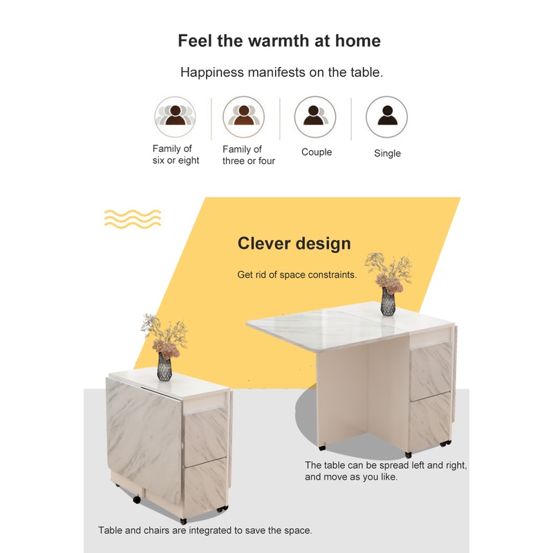 Folding Table Movable Wooden Rectangle Dining Table Living Room Restaurant Furniture Multifunction Home Foldable Desk