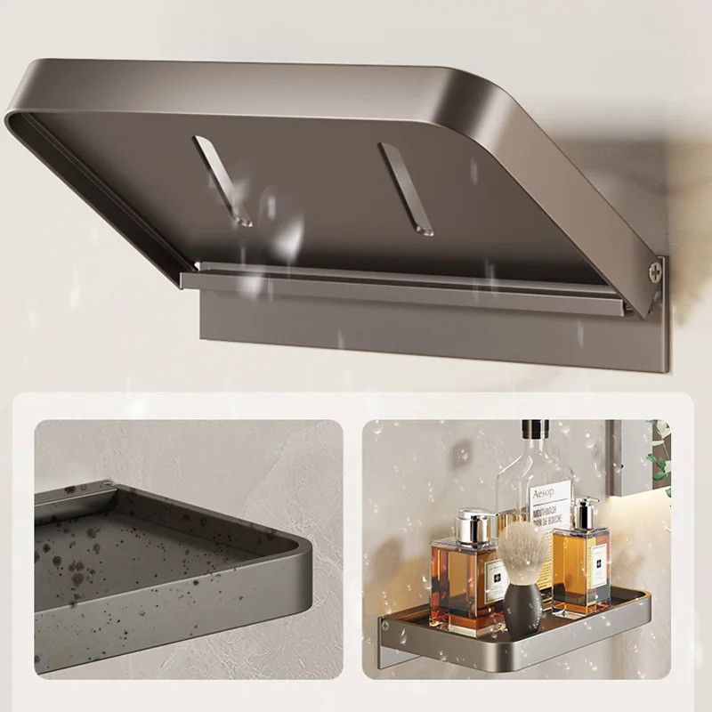 Folding Wall Mounted Shelf Saving Space Foldable Storage Rack Phone Holder Wifi Router Storage Tray BathroomOrganizer
