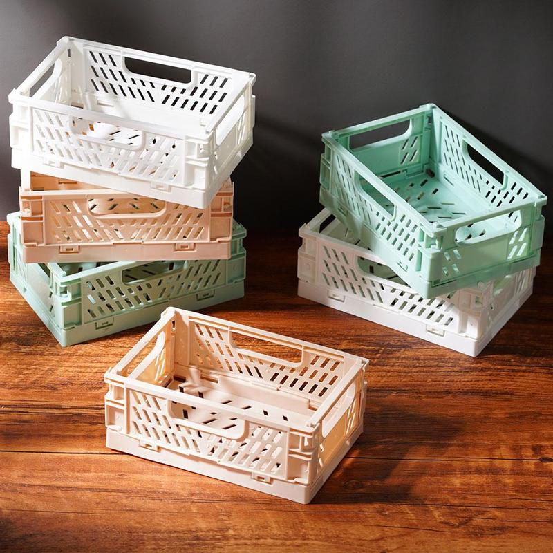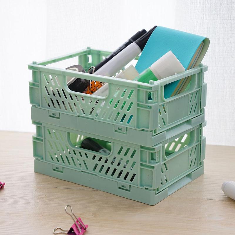 Folding plastic storage box student desktop organize stationery storage basket