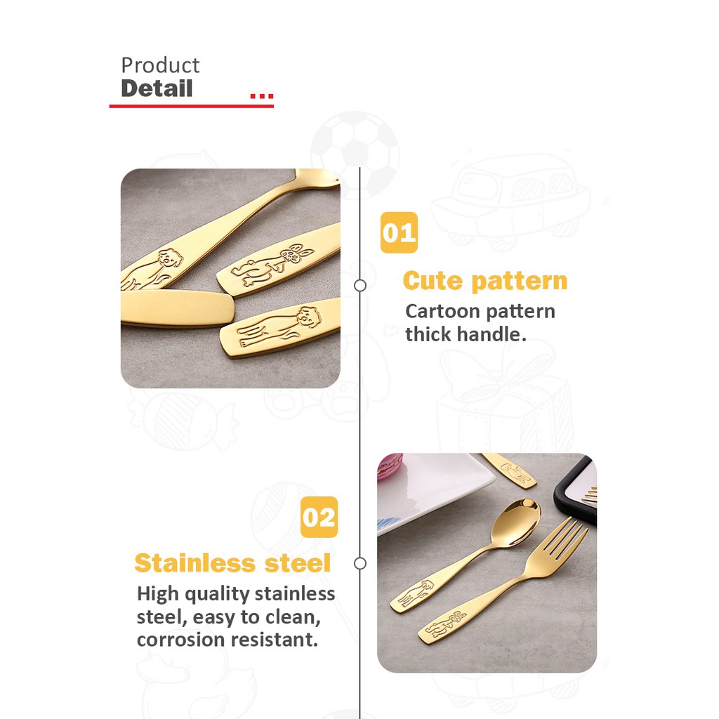 Food grade Stainless Steel Baby Spoon Fork Knife Kids Feeding Spoon Child Cutlery Set Flatware Eating Utensils