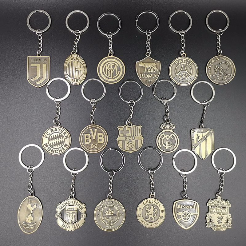Football club Barcelona Real Madrid Liverpool Juventus Manchester United metal retro colo key chainRetro Bronze Keychain