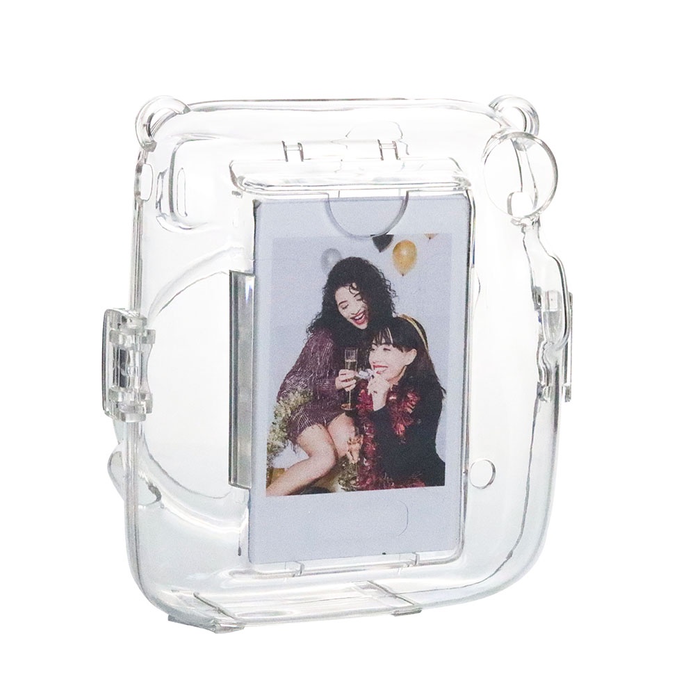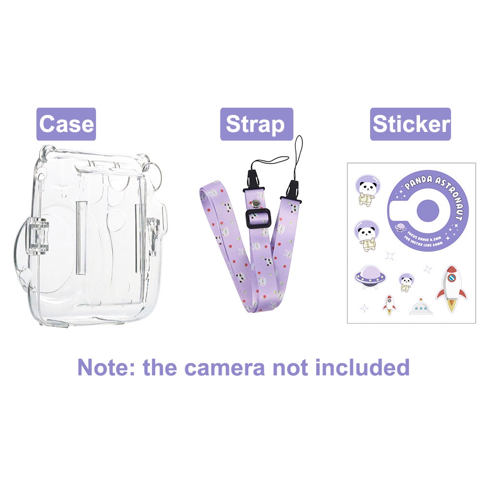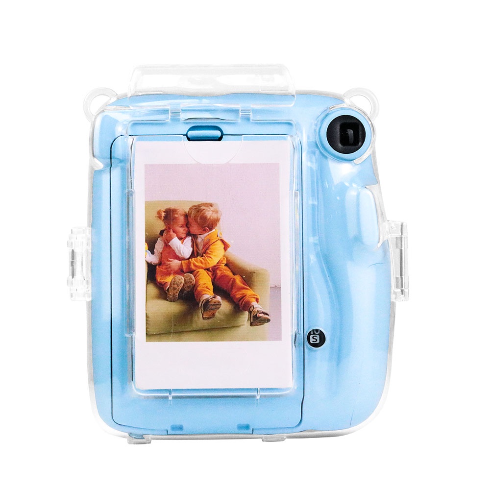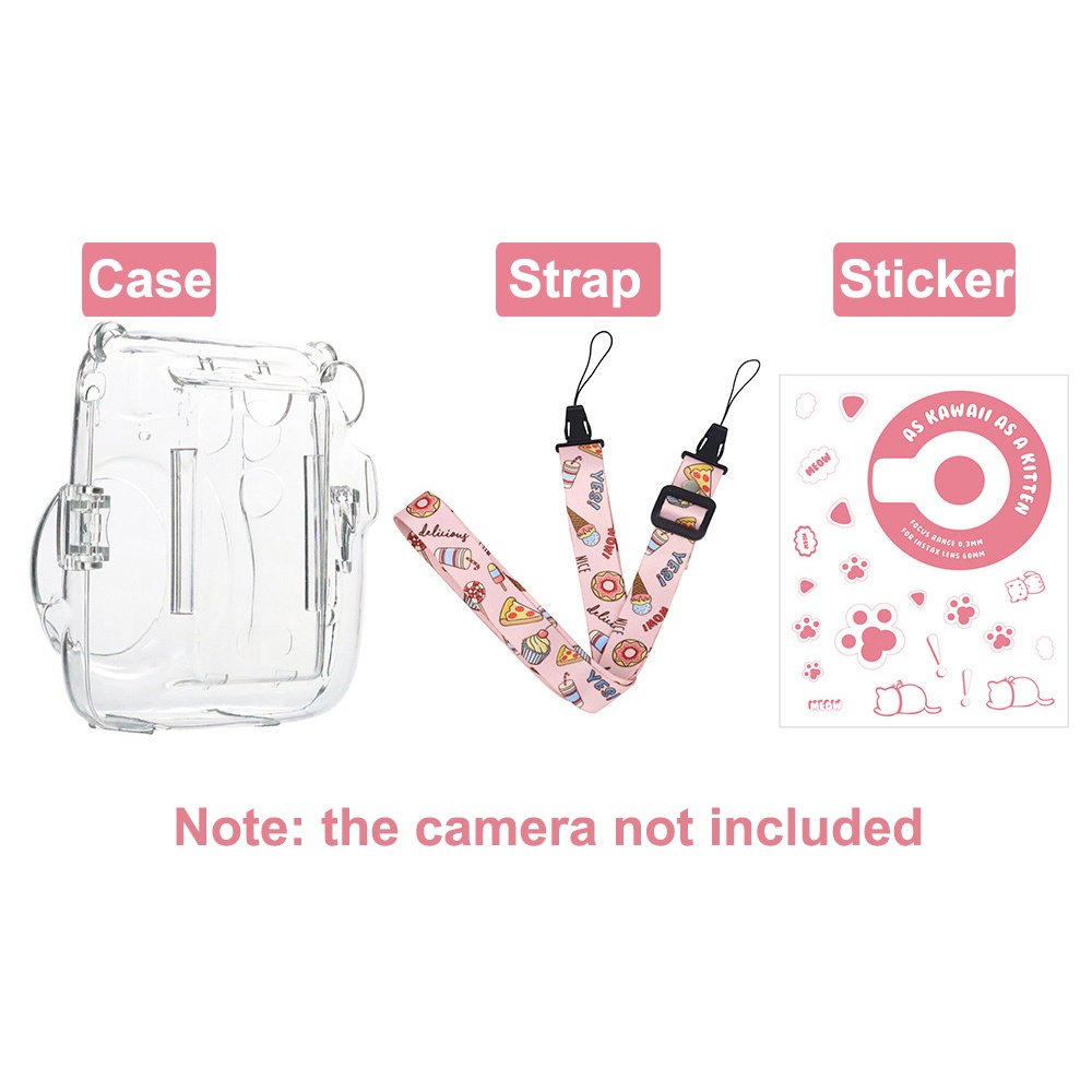 For Fujifilm Instax Mini 11 Crystal Transparent Case Bag with Pouch + Strap +Stickers Kit Bundle Set(Camera Not included)