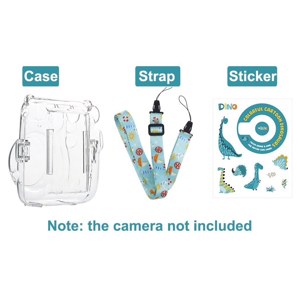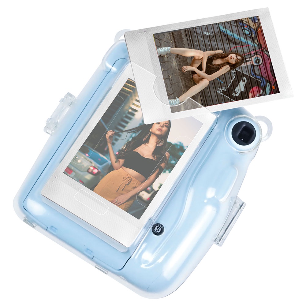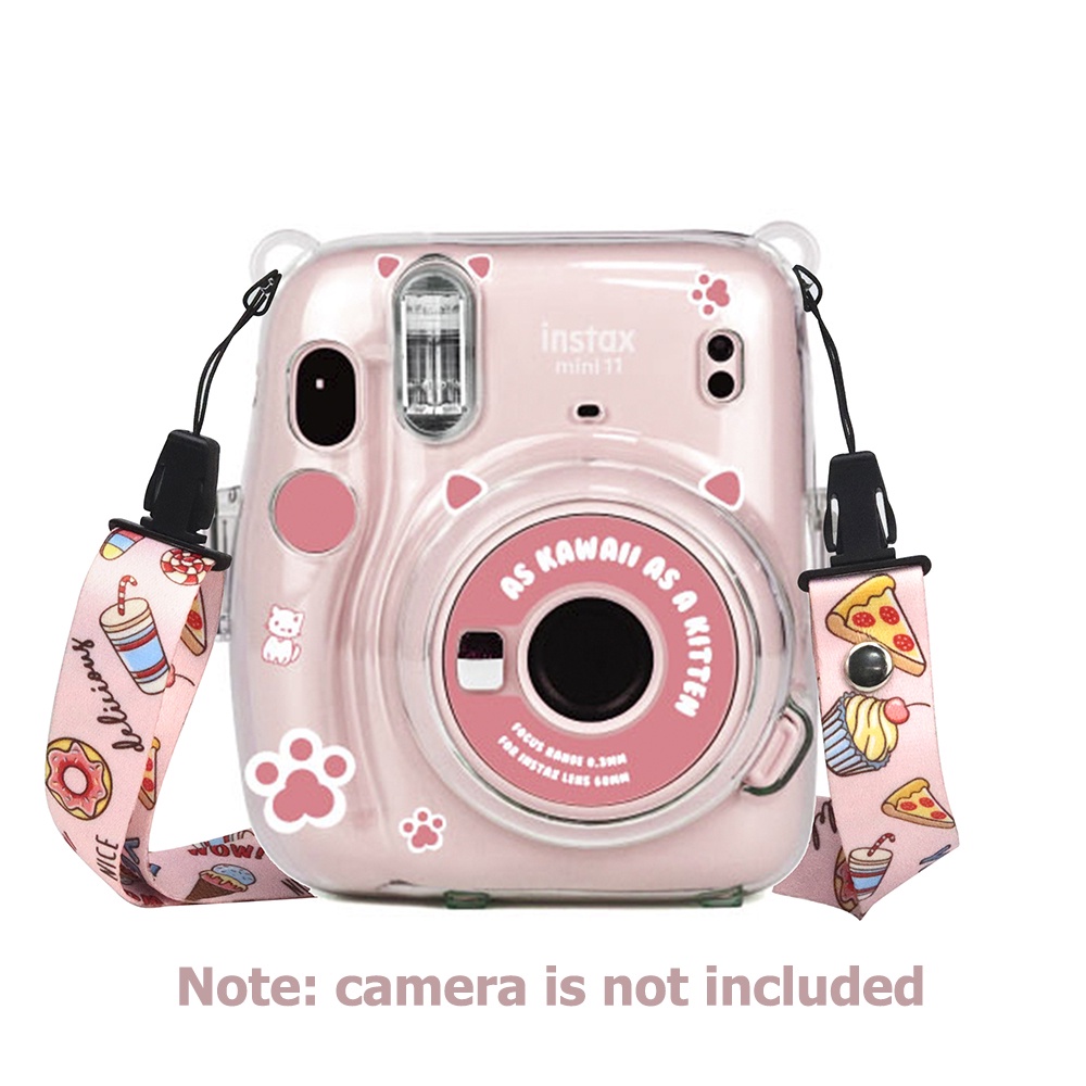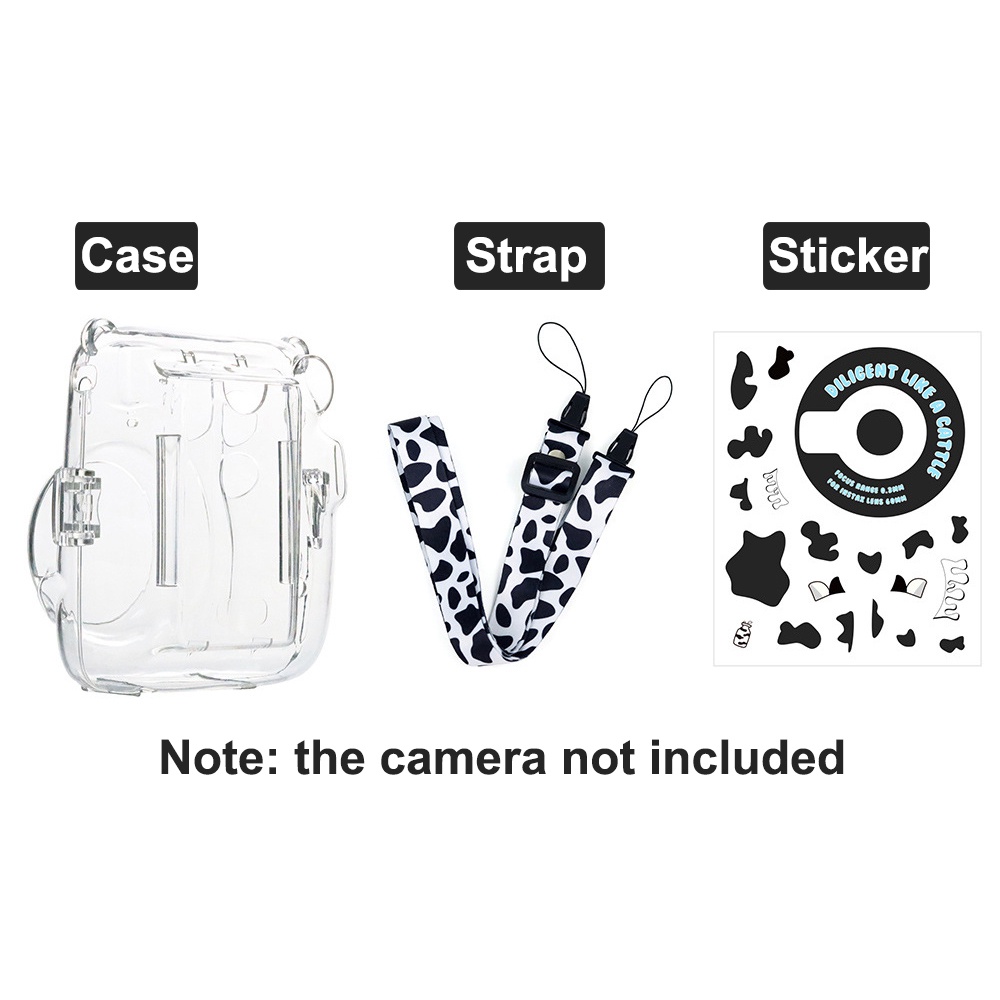 For Fujifilm Instax Mini 11 Crystal Transparent Case Bag with Pouch + Strap +Stickers Kit Bundle Set(Camera Not included)