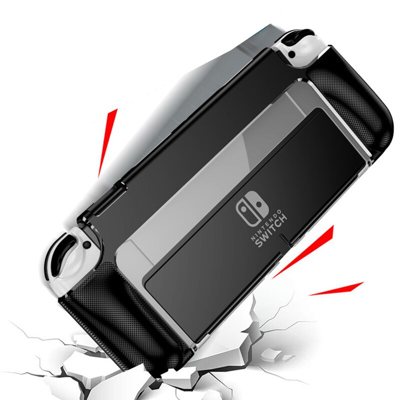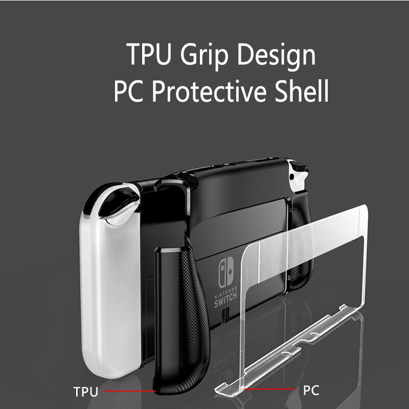 For Nintendo Switch OLED 2021 Dockable Protective Case PC+TPU Shell Ergonomic Handle Grip Holder NS OLED Slim Cover Skin Guard