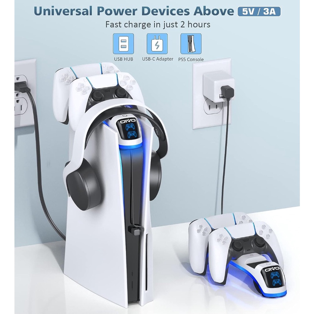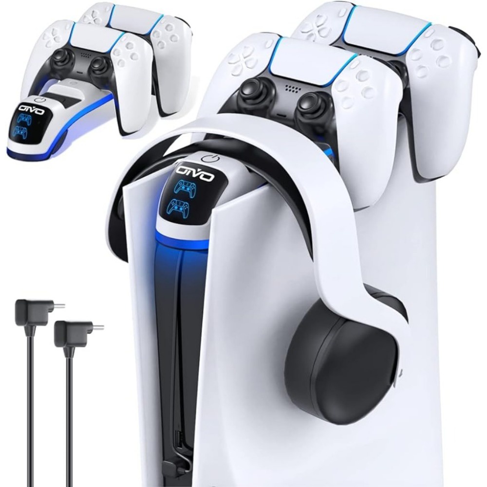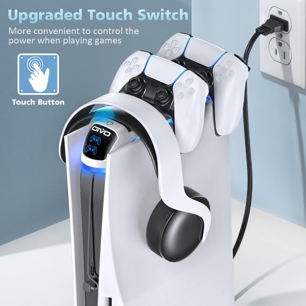 For PS5 Controller Charger with Headset Holder, Playstation 5 Controller Fast Charging Station with Upgraded Touch Switch