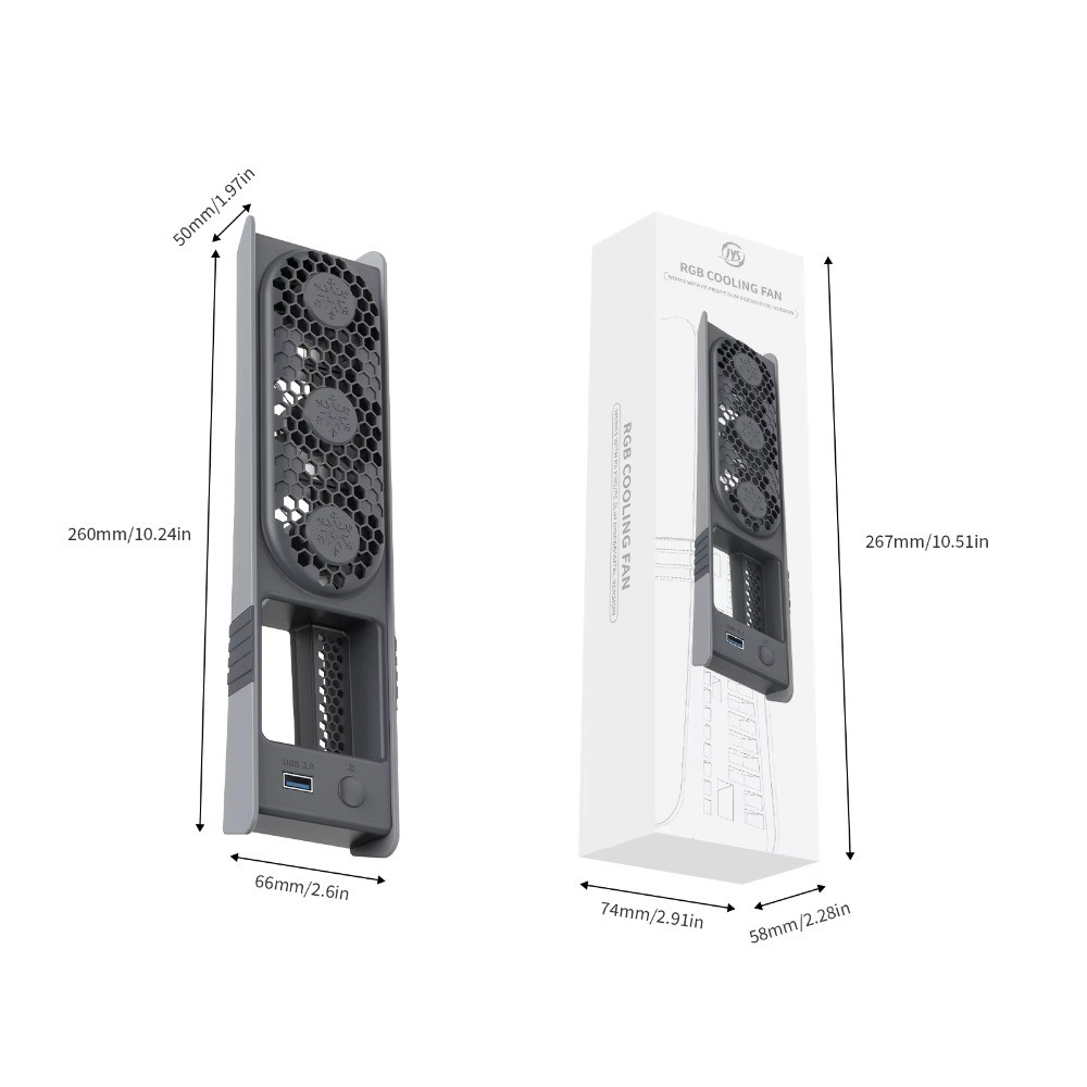 For PS5 Pro/PS5 Slim Cooling Fan External Fan Cooler with USB Port & RGB Light 30Th Anniversary Gray for PS5 Pro/Slim Disc and Digital Edition