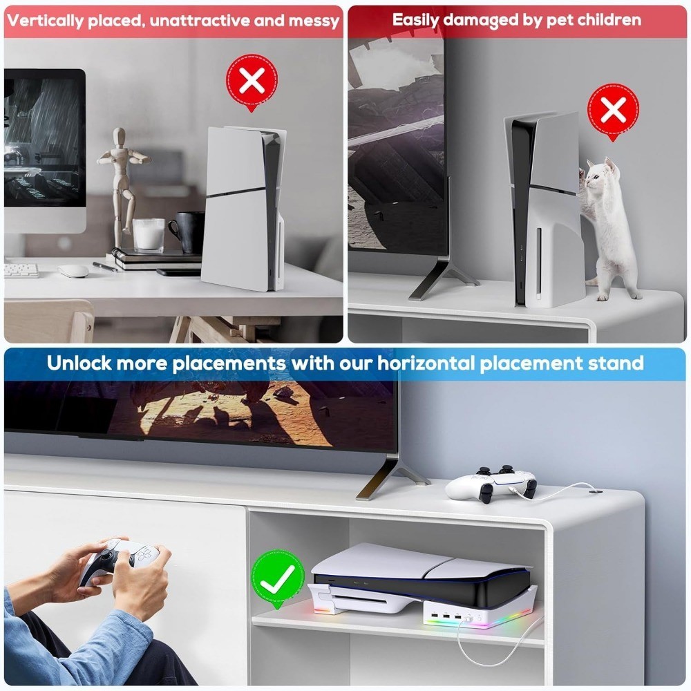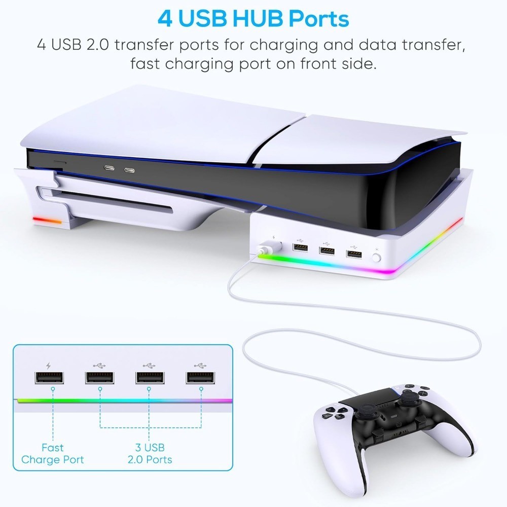 For PS5 Pro / Slim RGB Horizontal Stand with 4 USB Ports RGB Colorful Lights For Playstation 5 Game PS5 Accessories