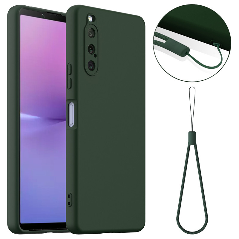 For Sony Xperia 1 10 VI Case ELVEV Soft Liquid Silicone Strap Protective Suction Cover with Microfiber Lining