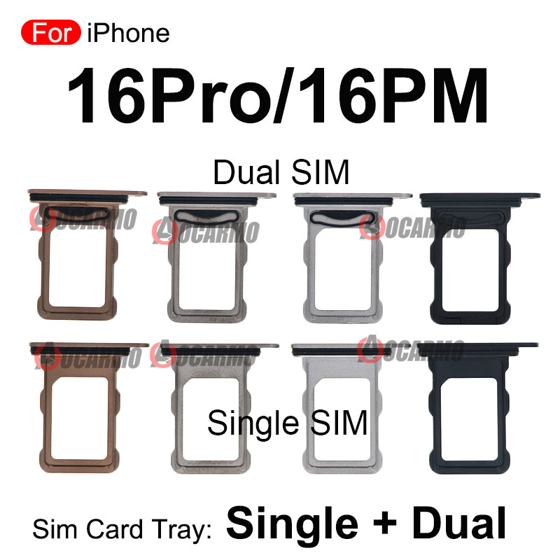 For iPhone 16 Pro Max 16Pro SIM Card Dual + Single Sim Tray Slot Replacement Parts Black Gold Grey White