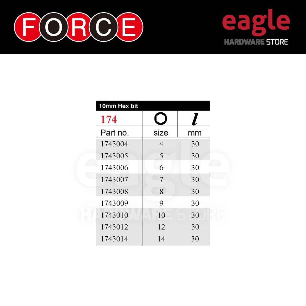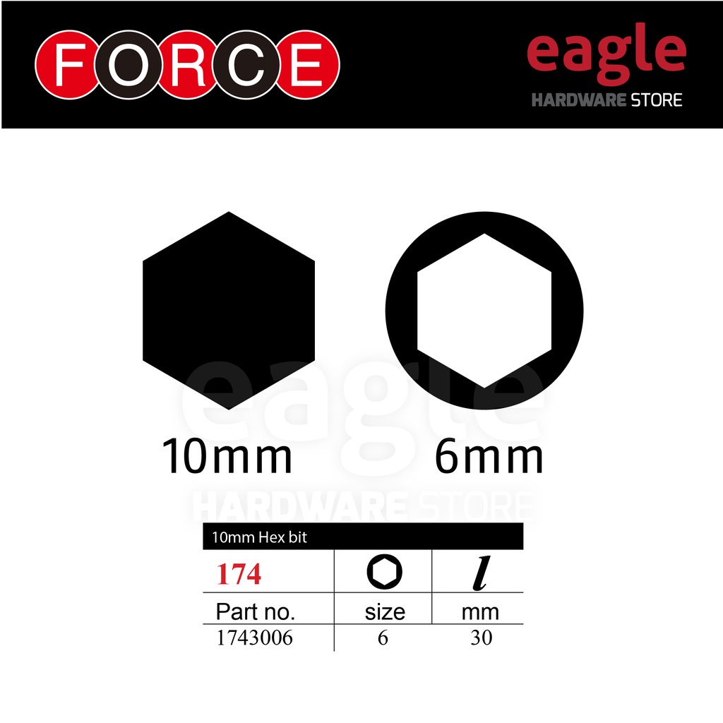 Force 174 Hex Bit - 10mm Shank ( M4 ~ M14 )