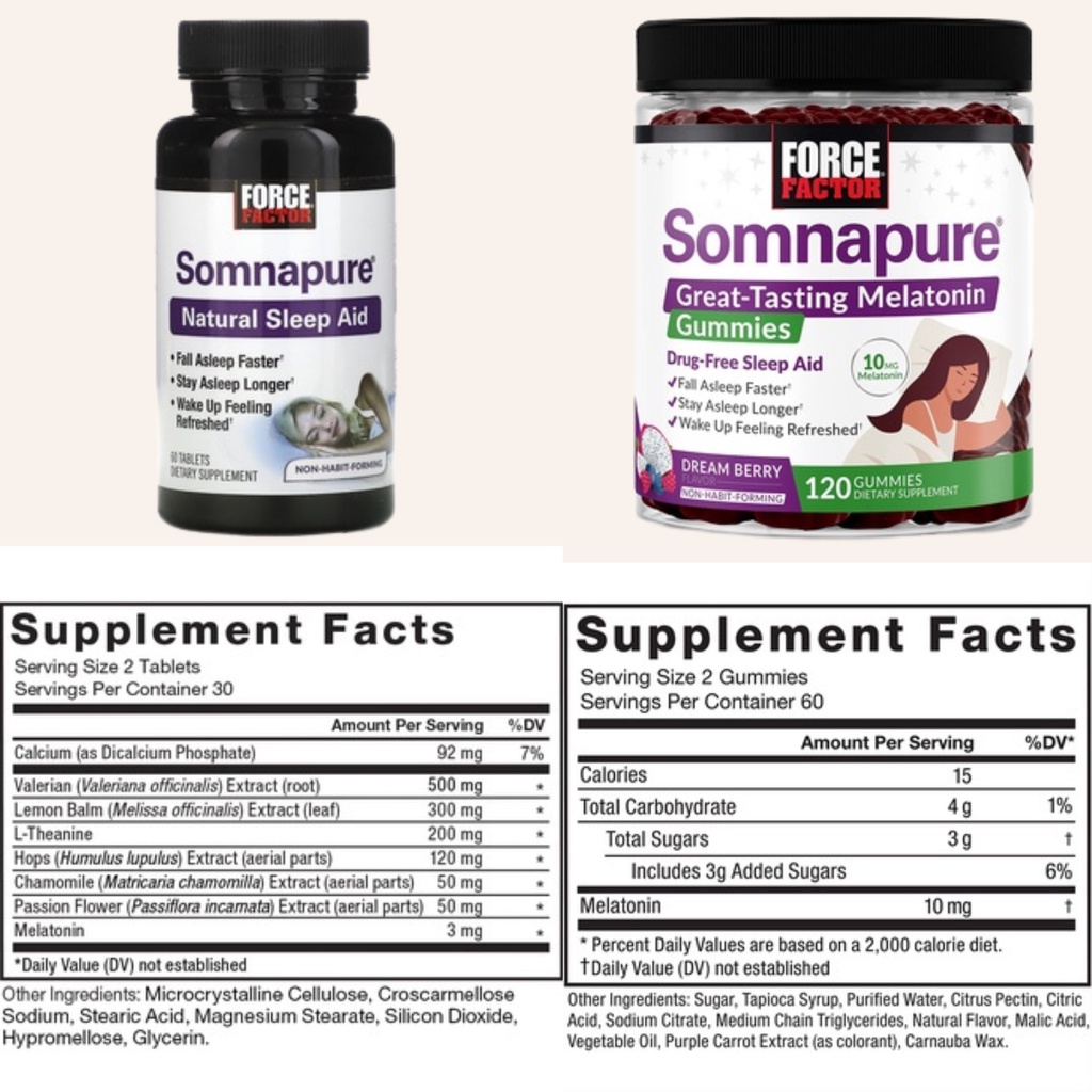 Force Factor, Somnapure Gummies & Somnapure, Melatonin, Sleep Aid, Sleep Supplement, Sleep Well, 120 Gummies/30-60 Tabs