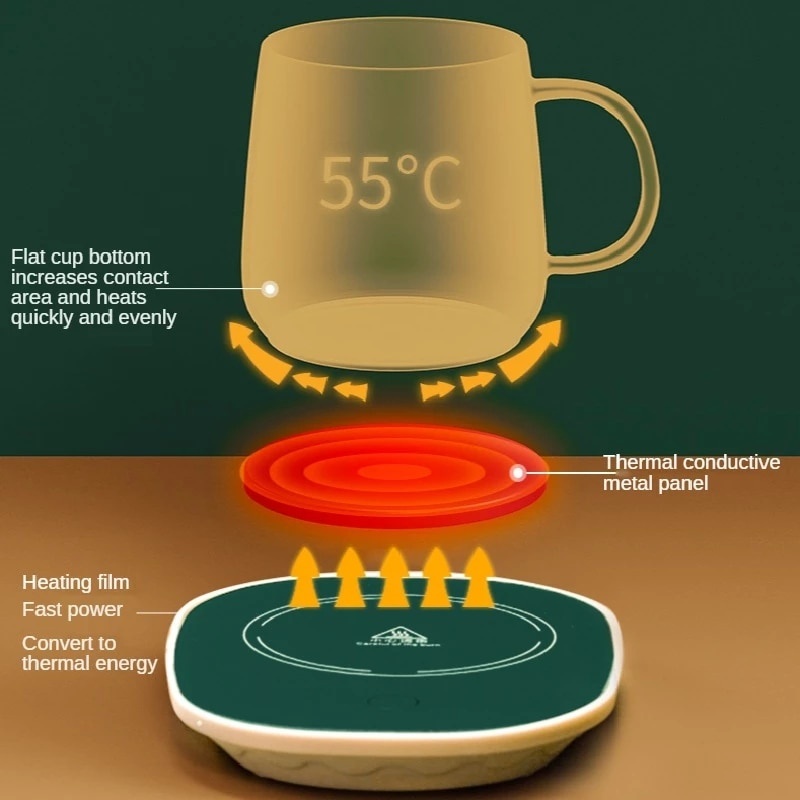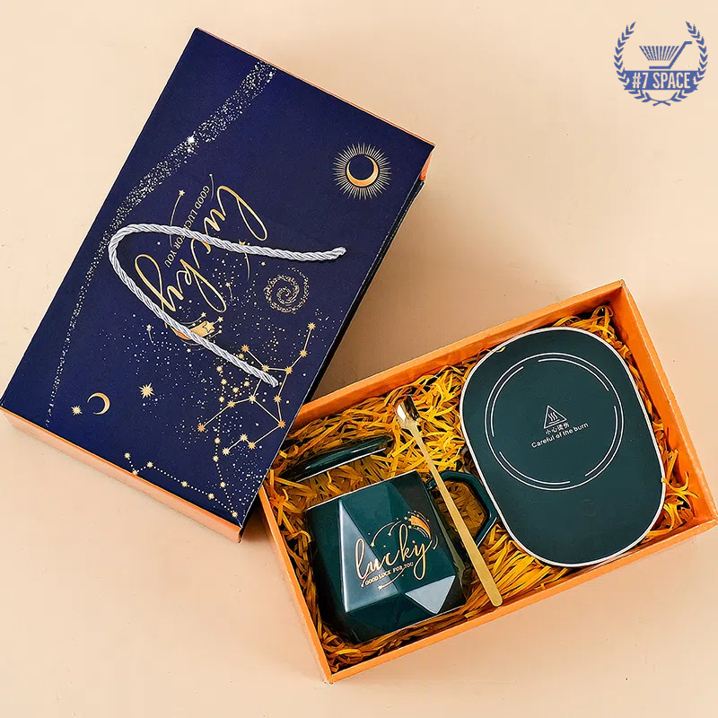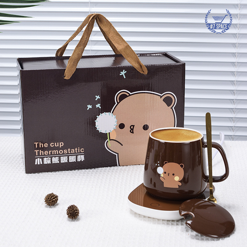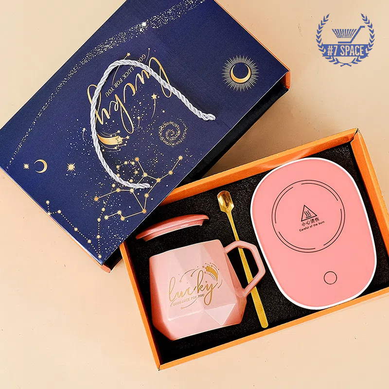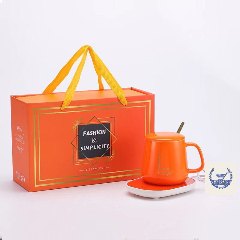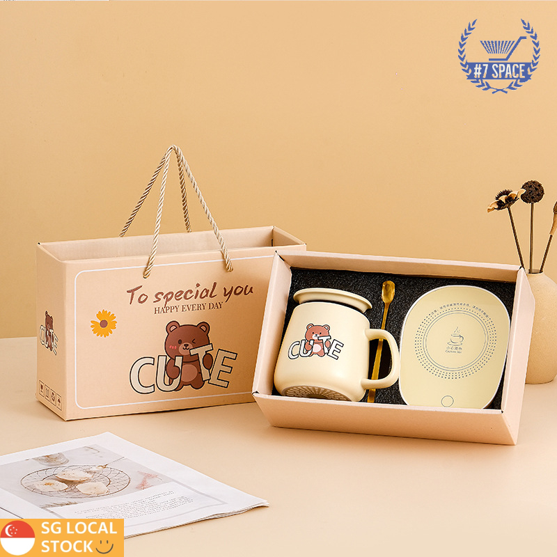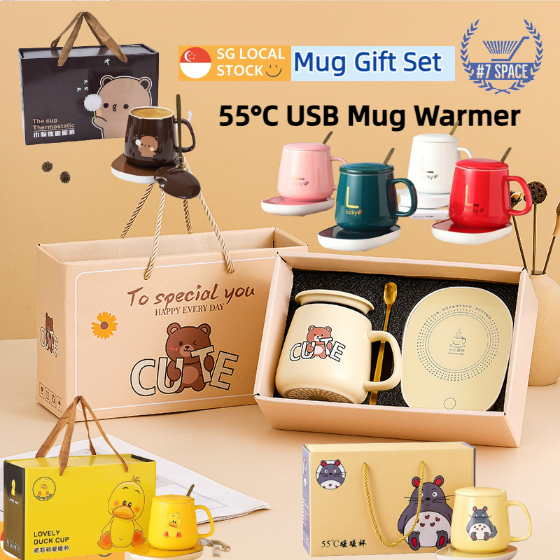🔥SG LOCAL STOCK🔥55°C Heating Electric USB Charge Mug Birthday /Corporate Gift Set With Cover Spoon Warmer Cup Pad Office