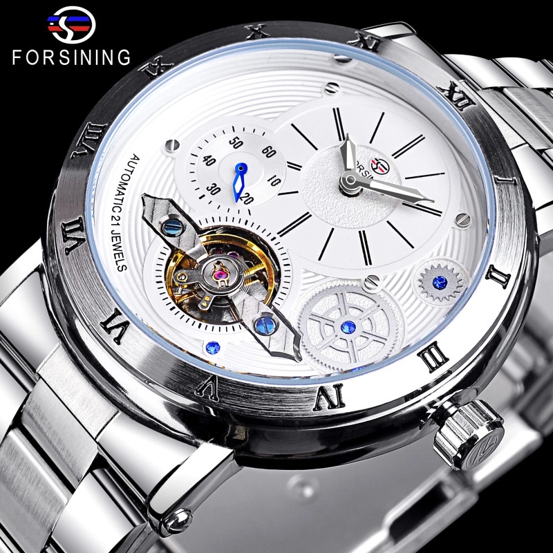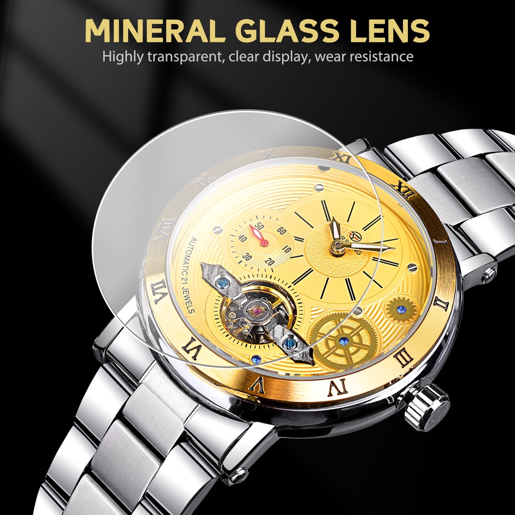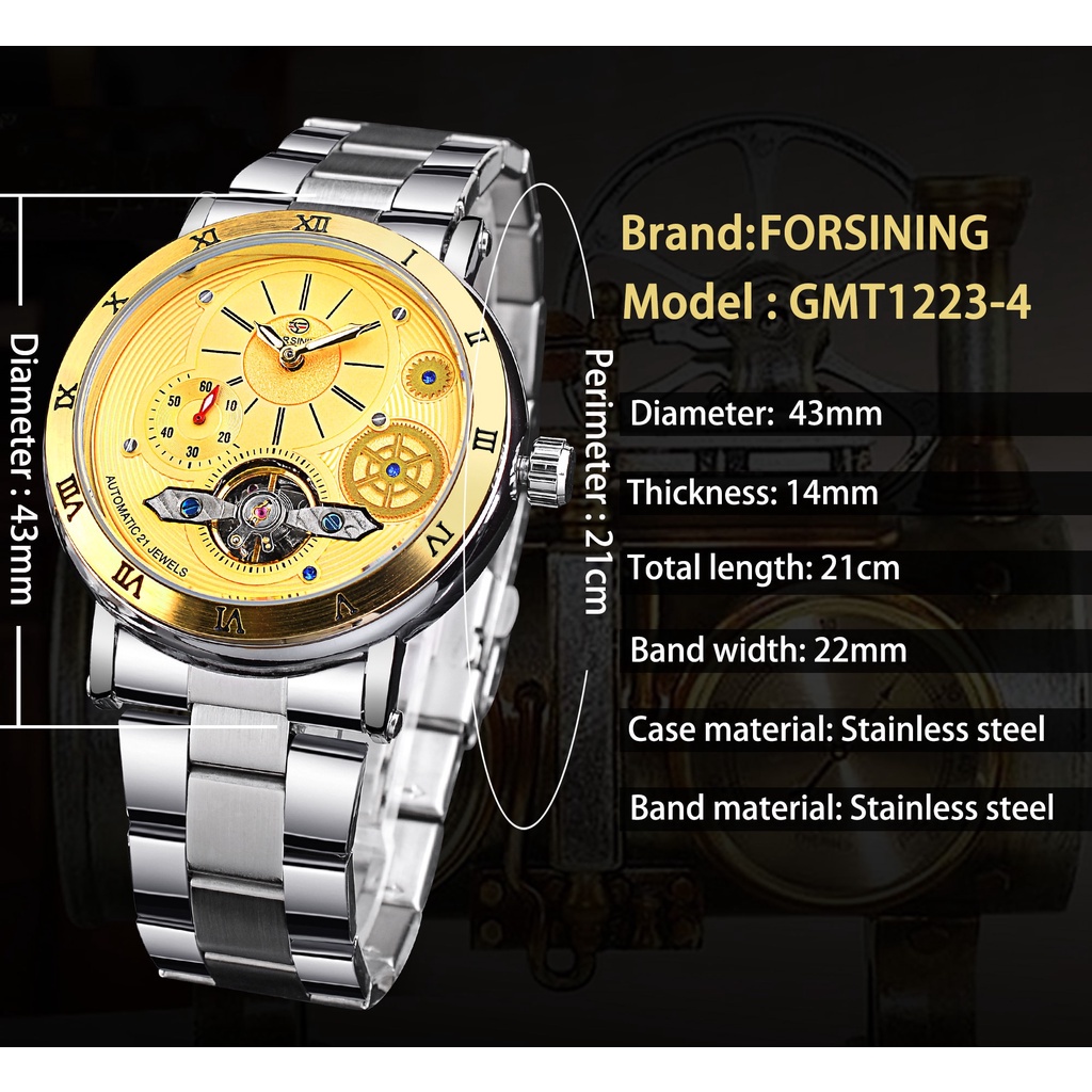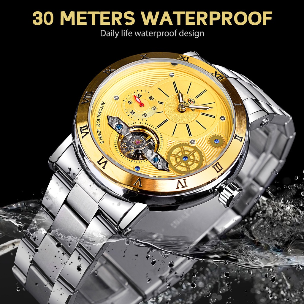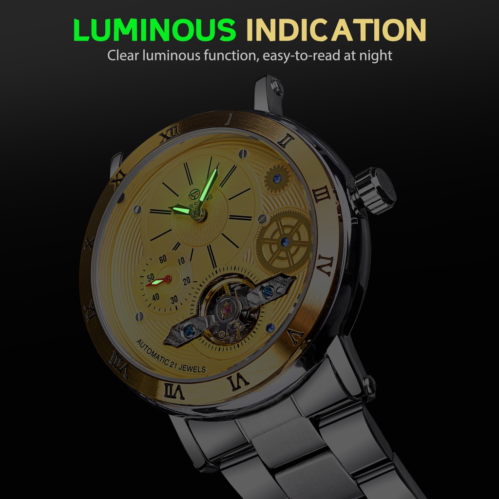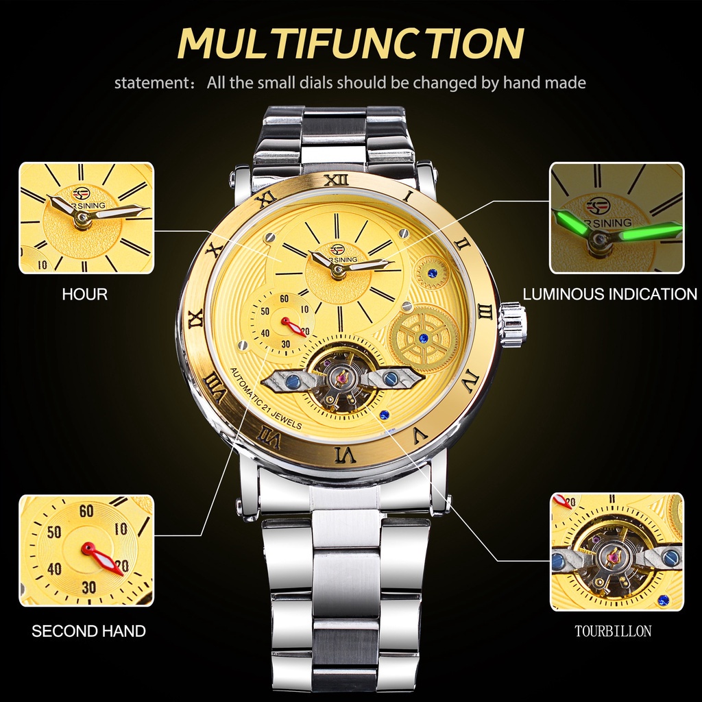 Forsining Tourbillon Skeleton Automatic Mens Watch Luxury Mechanical Watches Waterproof Luminous Mens Wristwatch Gold Clock