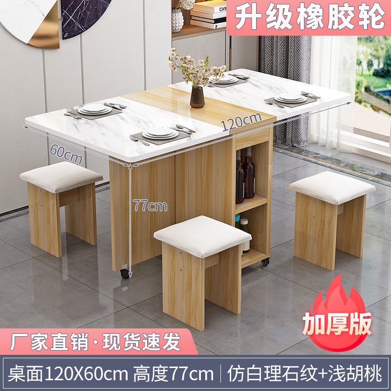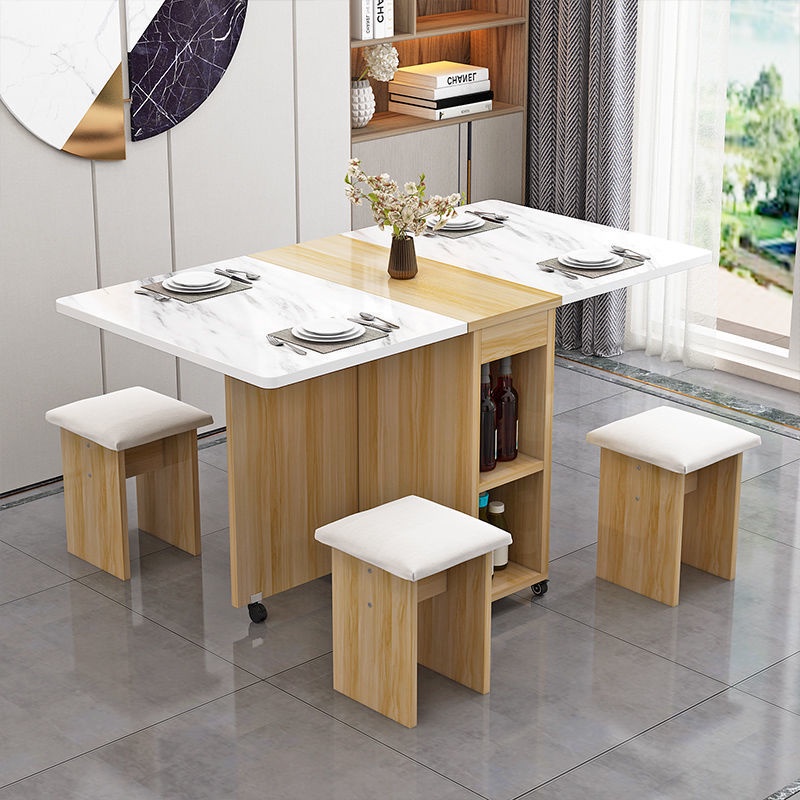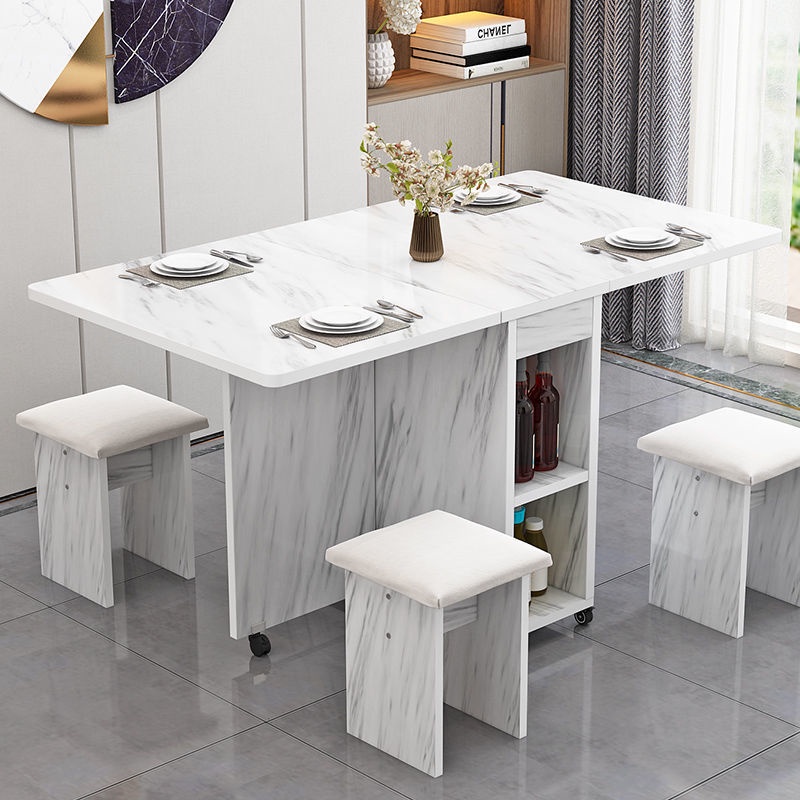 Free Shipping Folding Dining Table Household Small Family Type Movable Pulley Table Four Chairs Simple Rectangular Dining Table