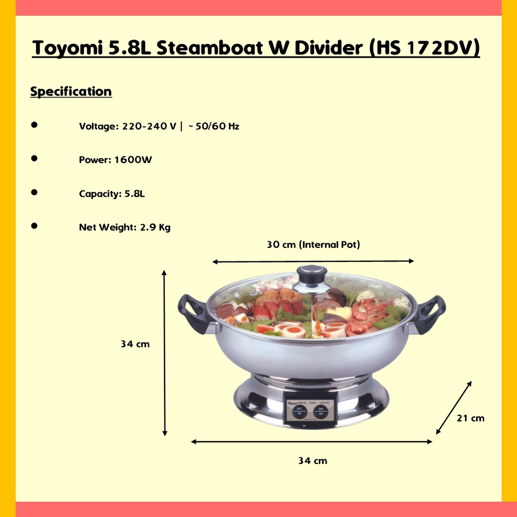 Toyomi 5.8L Steamboat with Divider (HS 172DV)