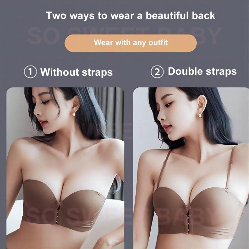 Front Clasp Bra Push Up Bra Strapless Seamless Wireless Thick Cup Dress Gown Bra Tube Top Bra