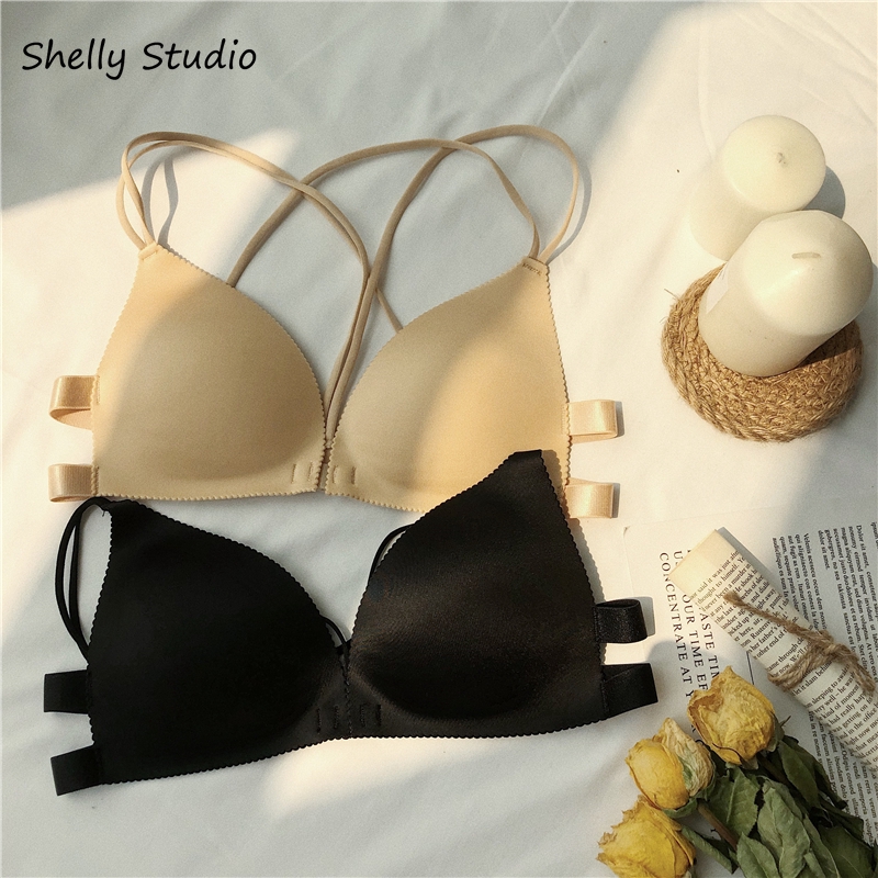 Front buckle cross beauty back seamless front buckle bra gathered underwear