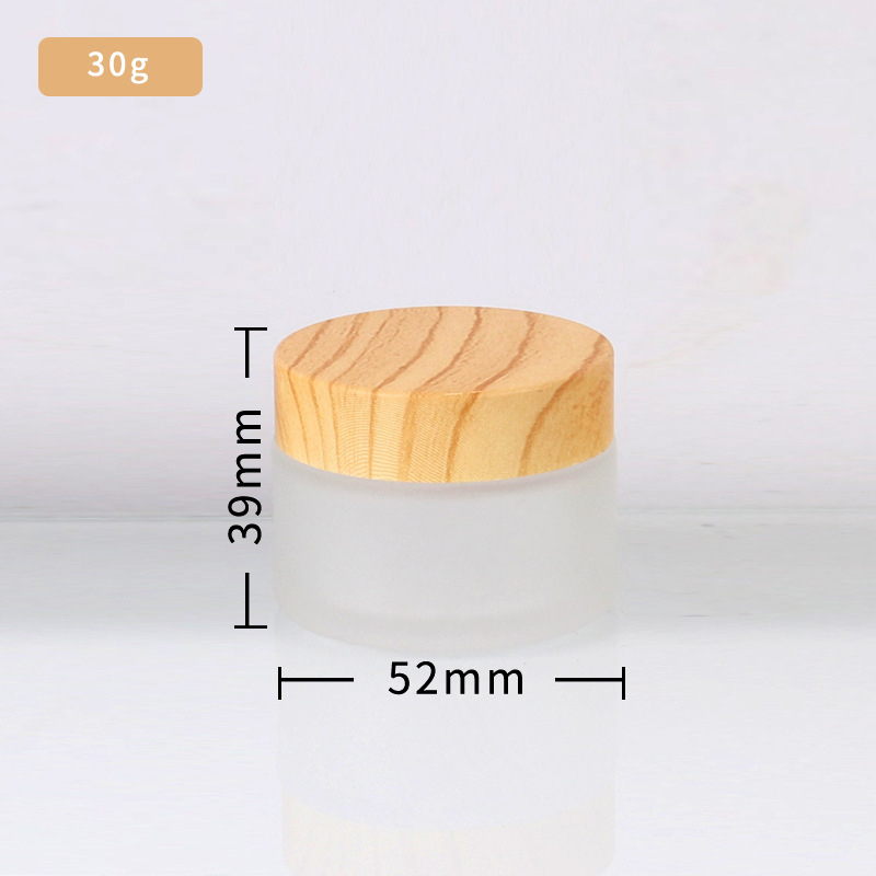 Frosted Glass Cream Jars, Bamboo lids Empty Refillable Cosmetic Container Bottles Glass for Travel 10g/20g/30g/50g/100g.