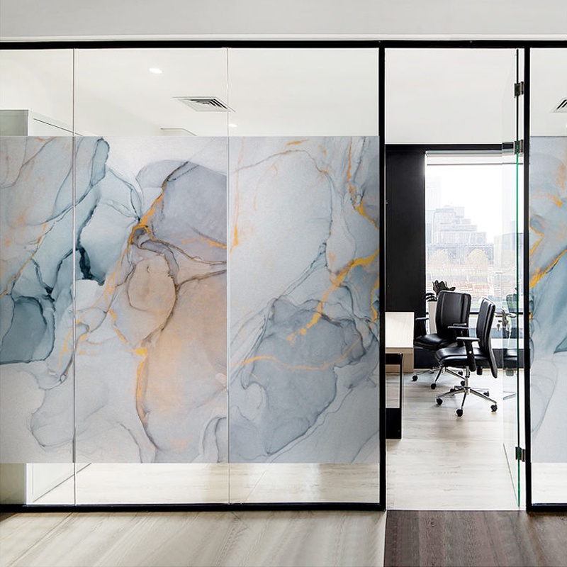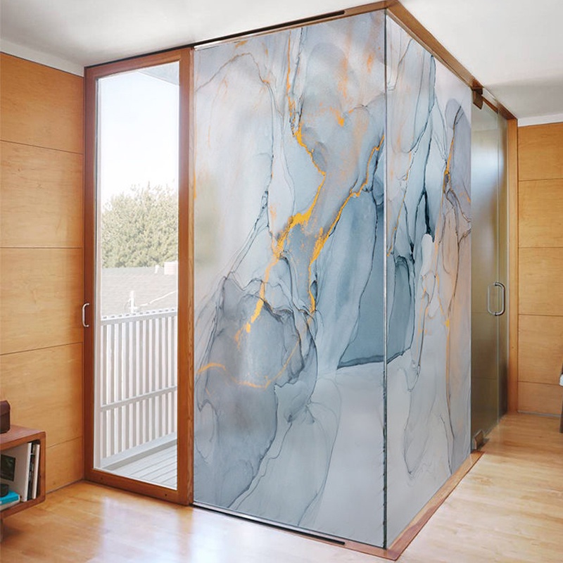 Frosted Privacy Window Film Stained Glass Film Marble Decor Non-adhesive Vinyl Window Stickers Glass Stickers Shower Door Film