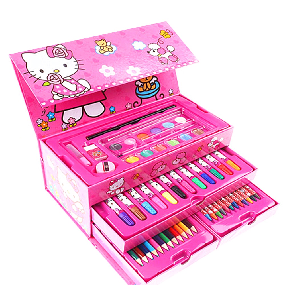 Frozen 54Pcs/Set Kids Drawing Art Set Cartoon Painting Pen Colour Pencils SPIDERMAN HELLO KITTY