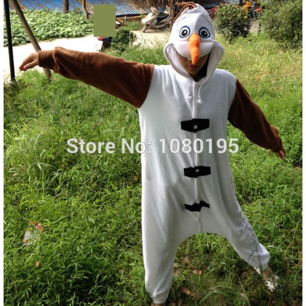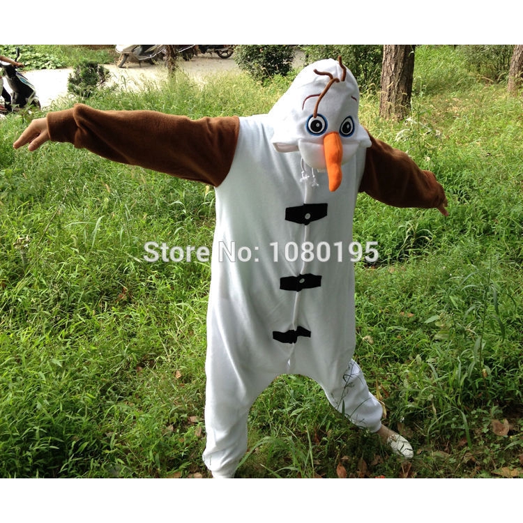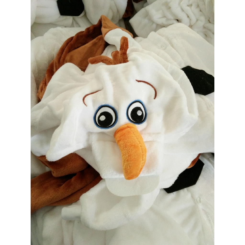 Frozen Anime Olaf snowman Cosplay Costume for Adult Kids Boys Girls Olaf Pajamas Flannel Soft White Jumpsuit Christmas Party Cosplay Clothes